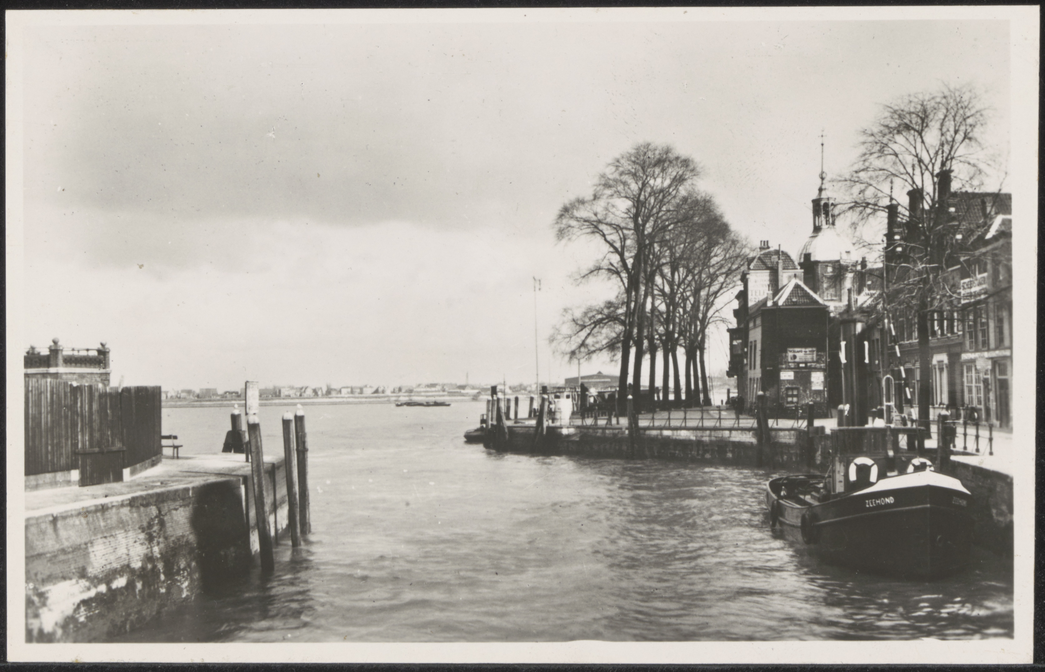 Vanaf de Damiatebrug over de Wolwevershaven zicht op het Groothoofd en de Kuipershaven. …