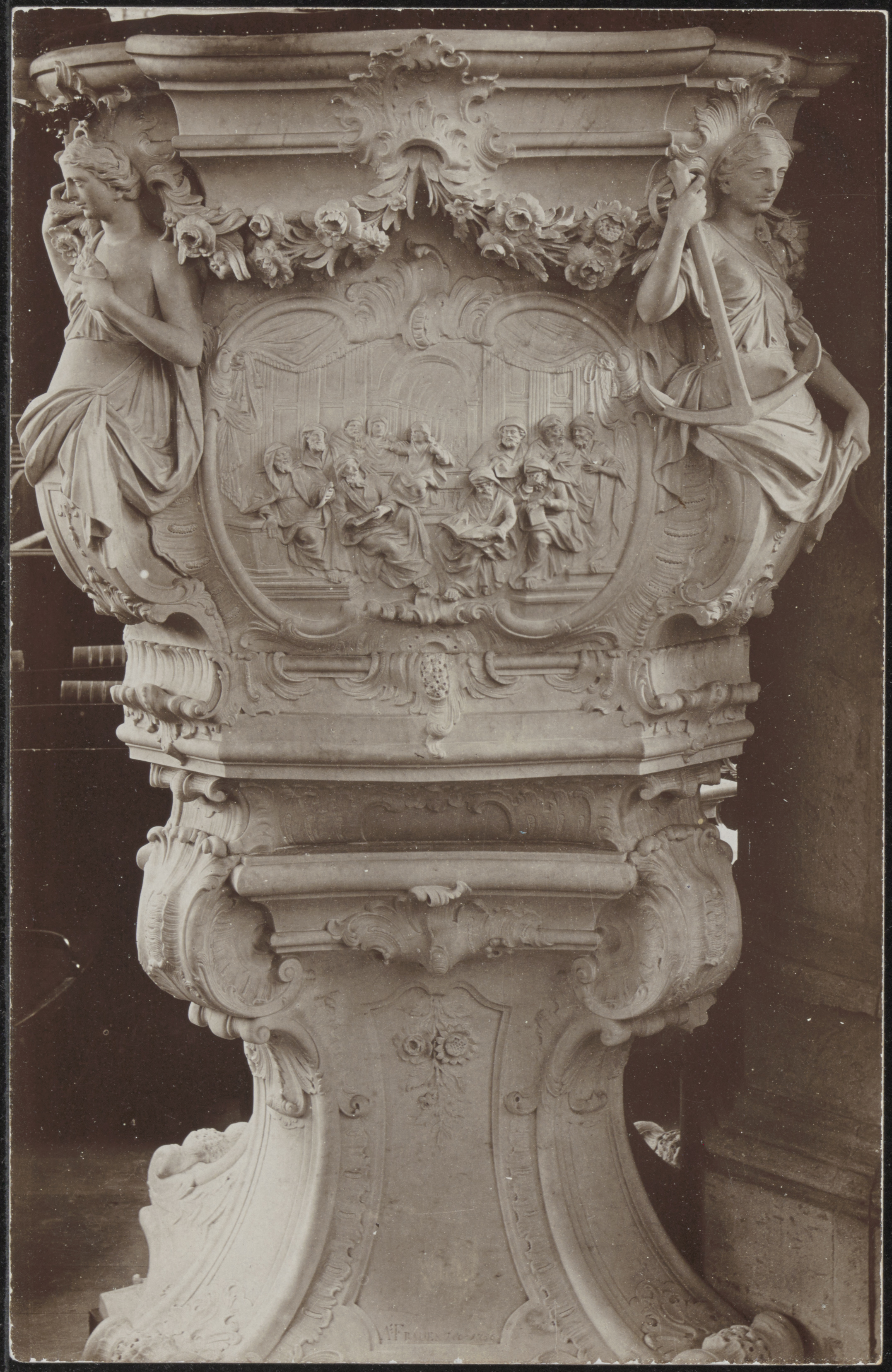 - Detail van de preekstoel in de Grote Kerk.