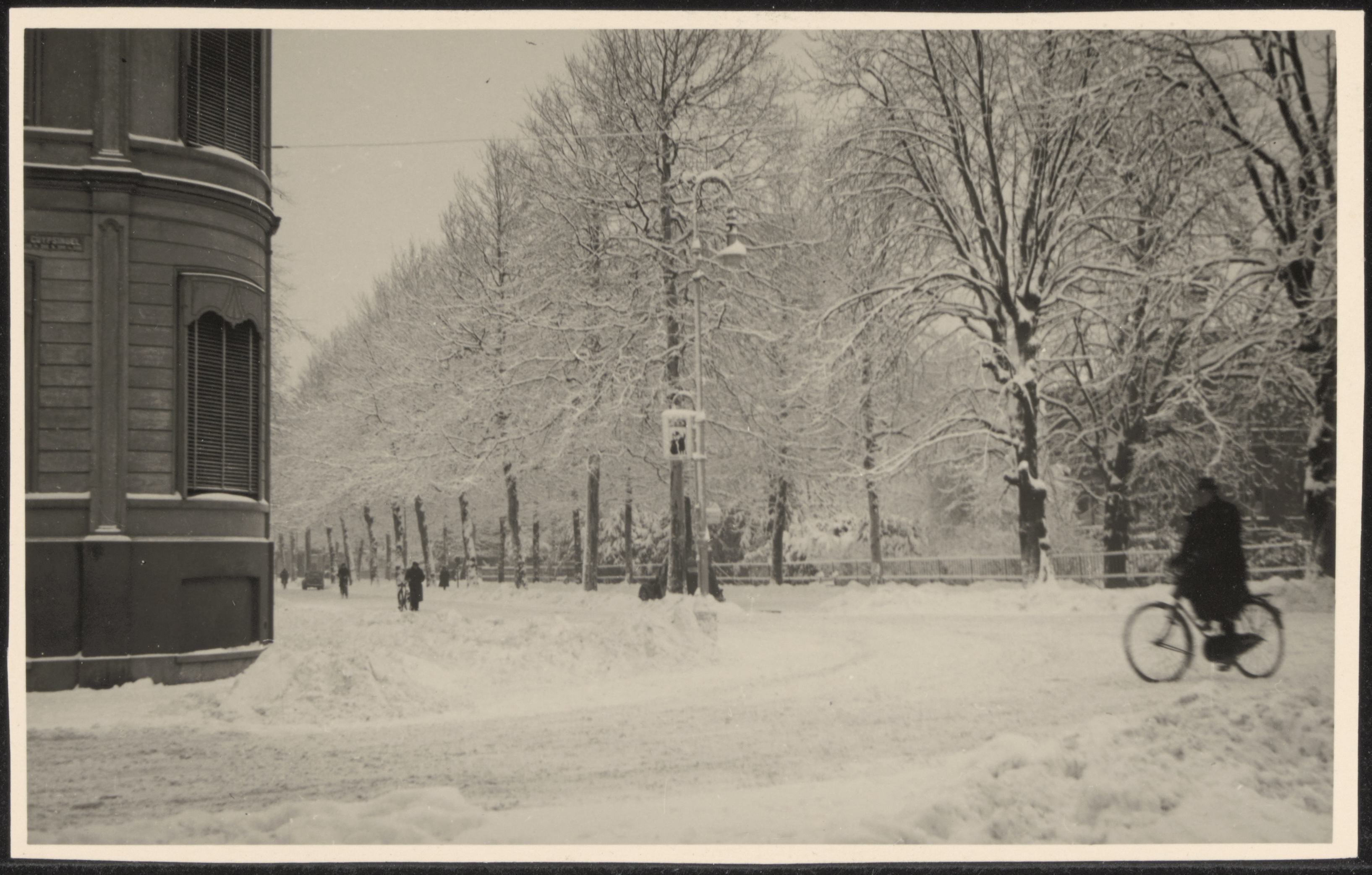- fietsers lantaarns / straatverlichting sneeuw