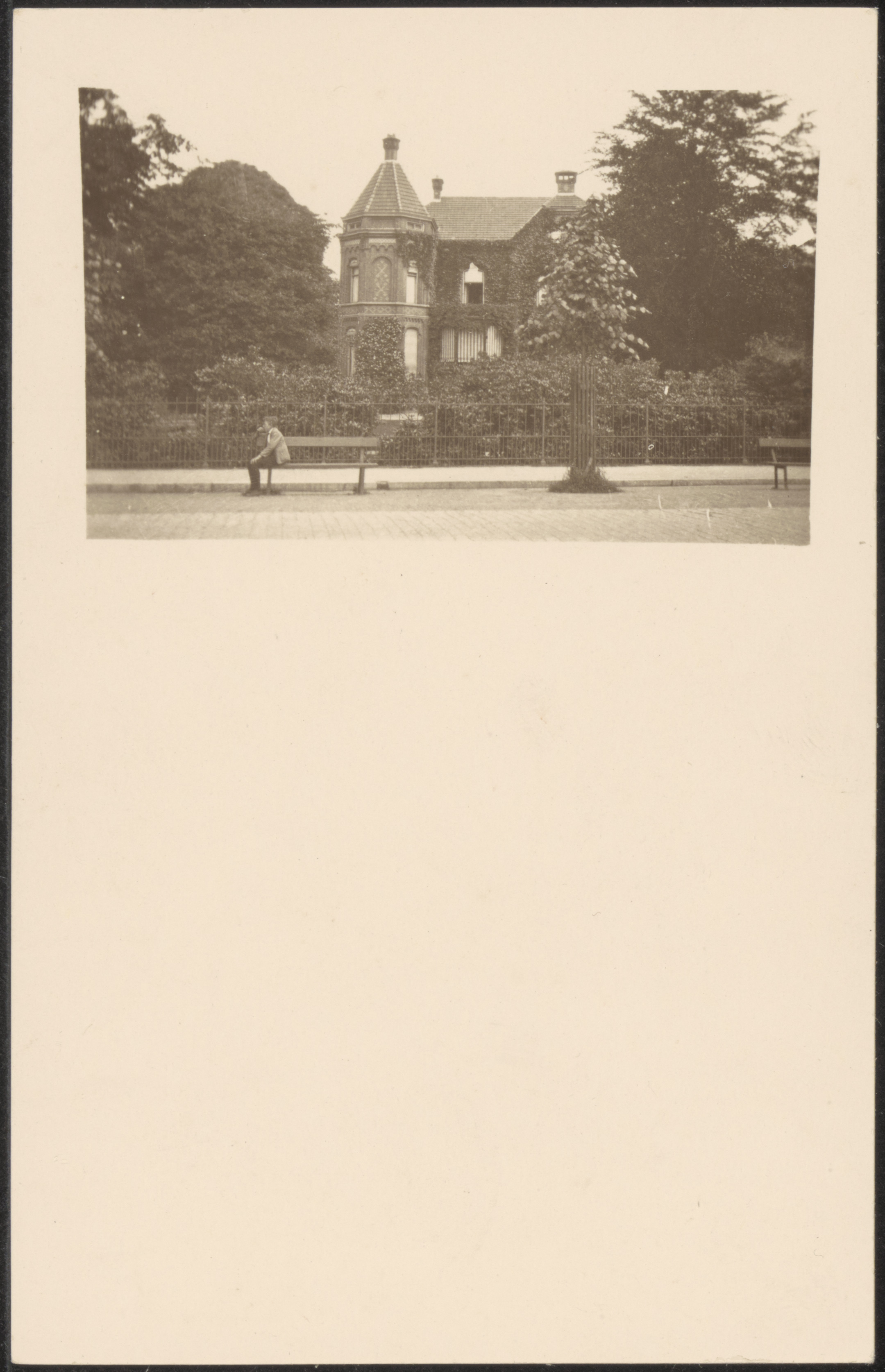 De kiosk waar jij het over hebt is van 1909-1911. Deze foto is van latere datum. Intussen wel wat gebeurd, lantaarnpaal verplaatst, bomen gerooid en vervangen en de klimop groeit gestadig door op de villa. De jongeman is zijn zonden aan het overdenken of hij heeft liefdesverdriet, maar ik vrees dat hij van een kiosk geen weet heeft :)