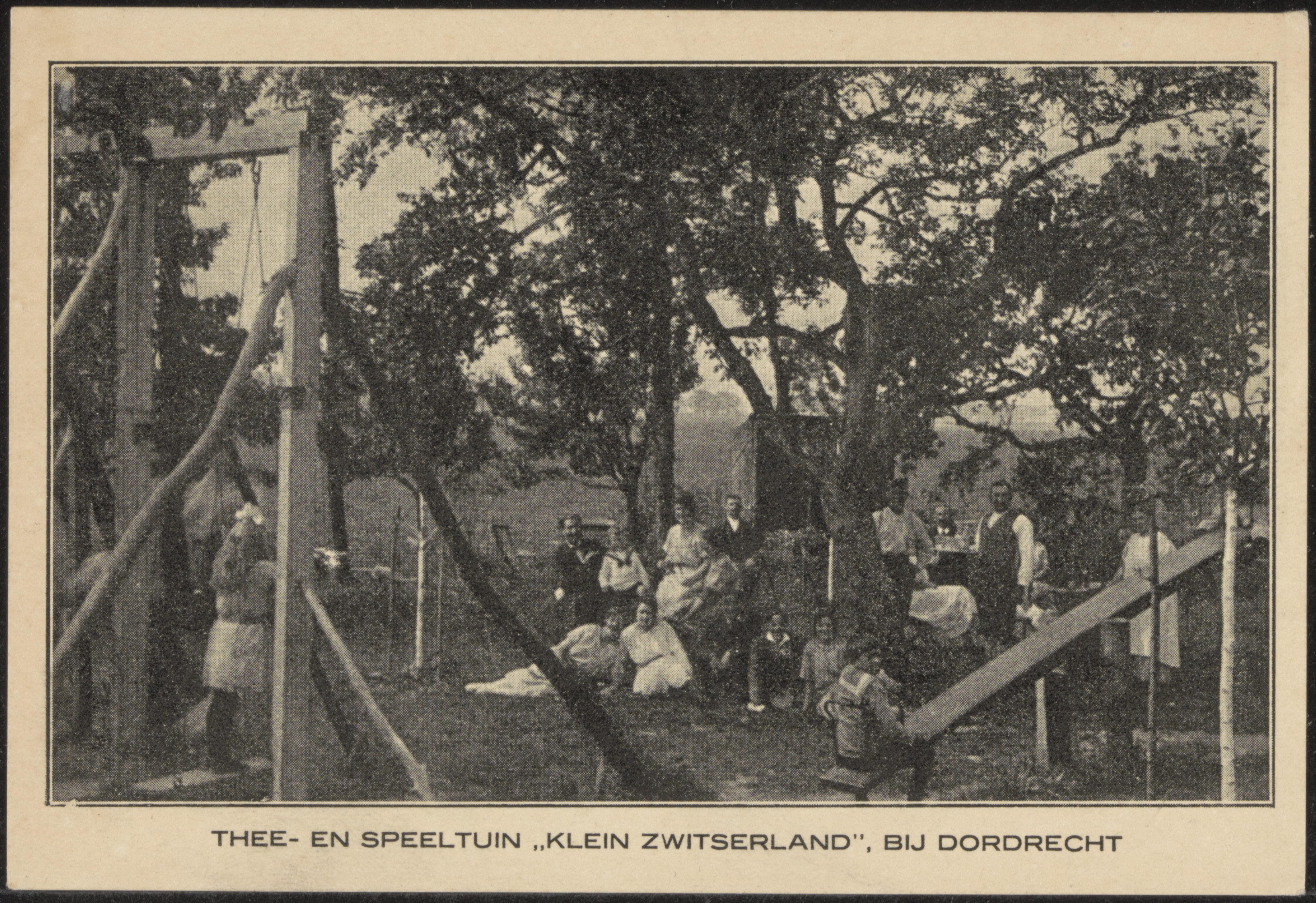 Theetuin en speeltuin Klein Zwitserland aan de Zeedijk hoek Van Elzelingenweg.