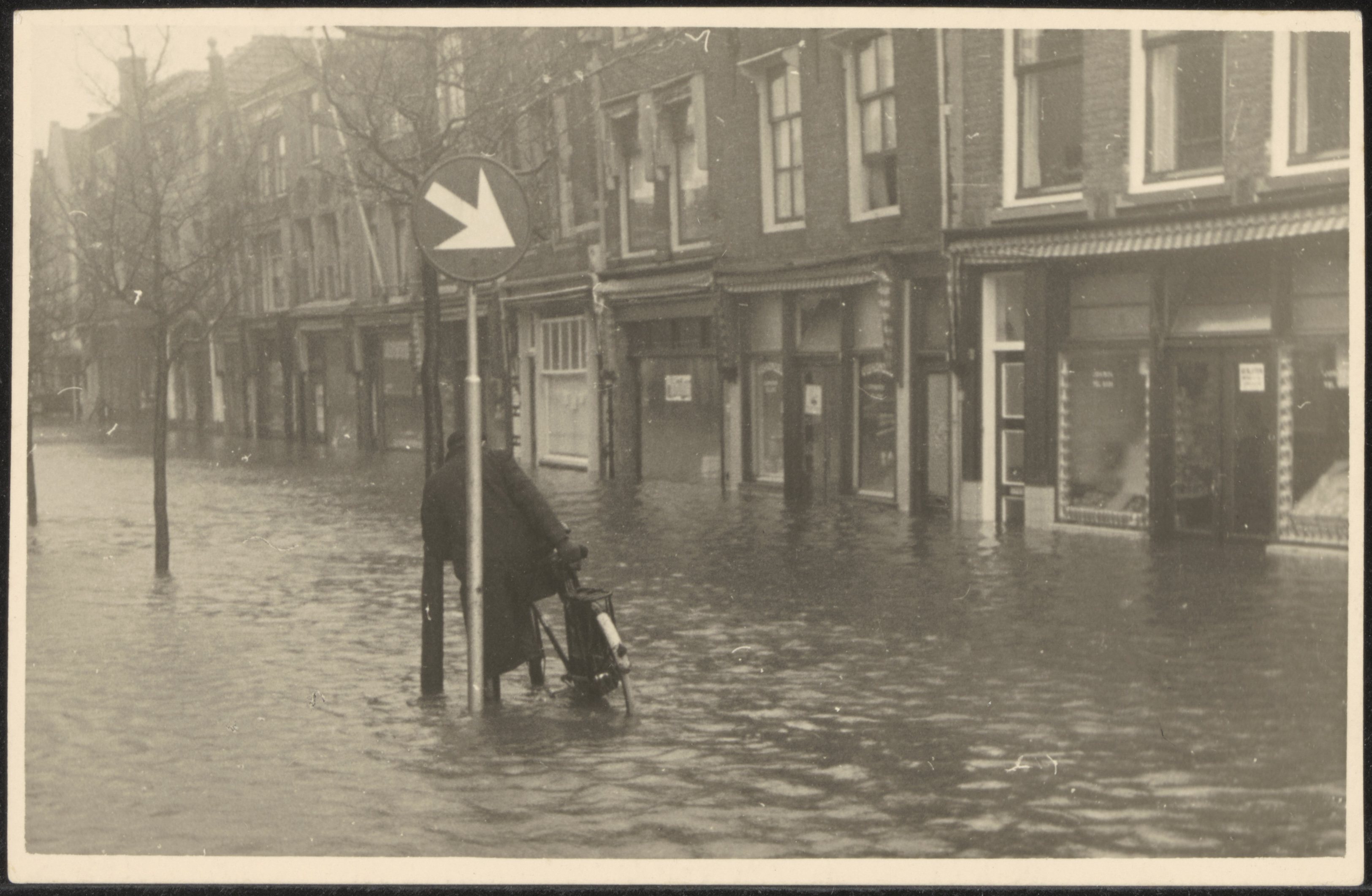 Ondergelopen Vriesestraat nabij de Vest tijdens de watersnoodramp.