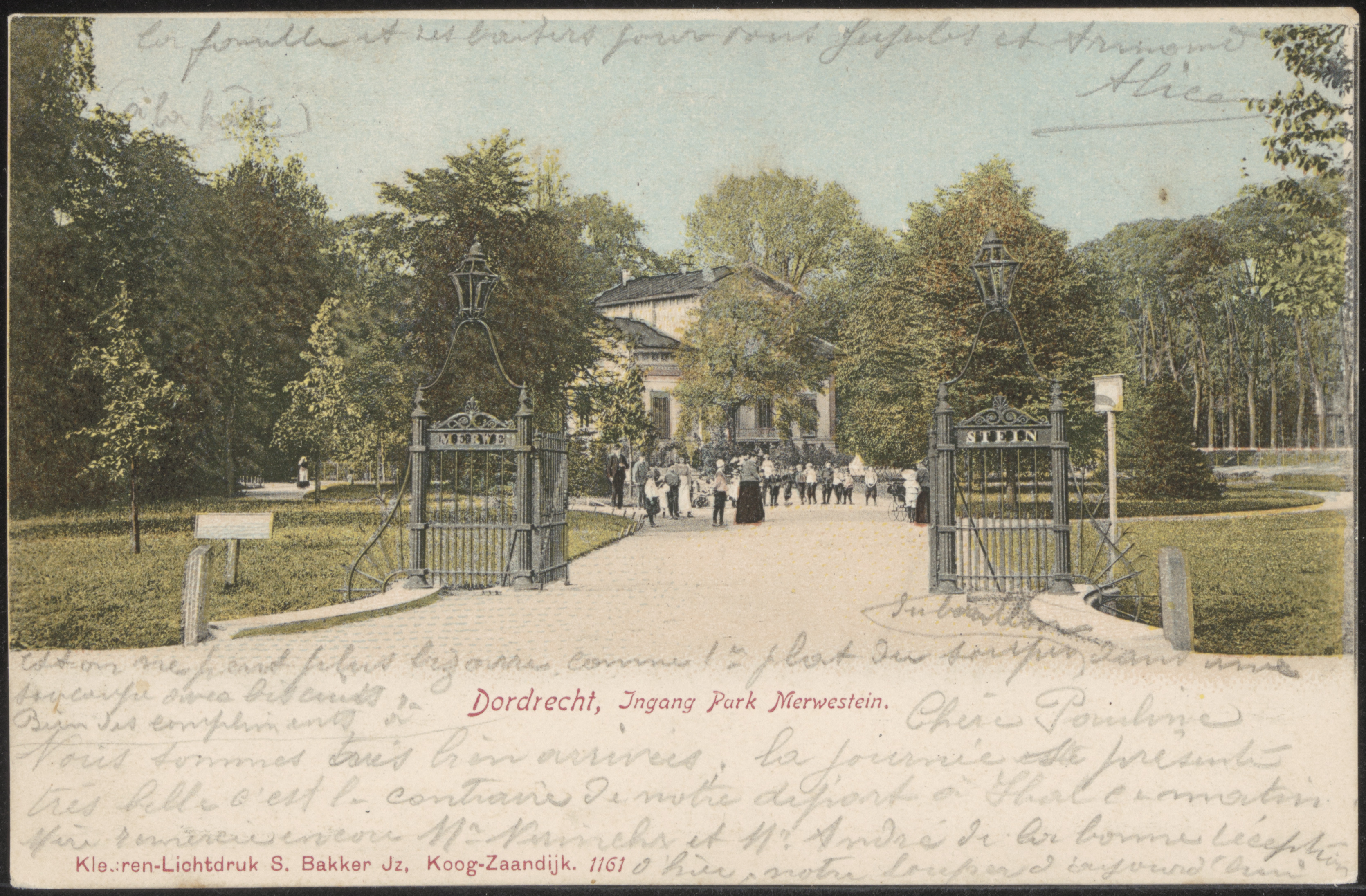 - Ingang van Park Merwestein aan de zijde van de Vrieseweg. Villa Merwestein op de achtergrond.