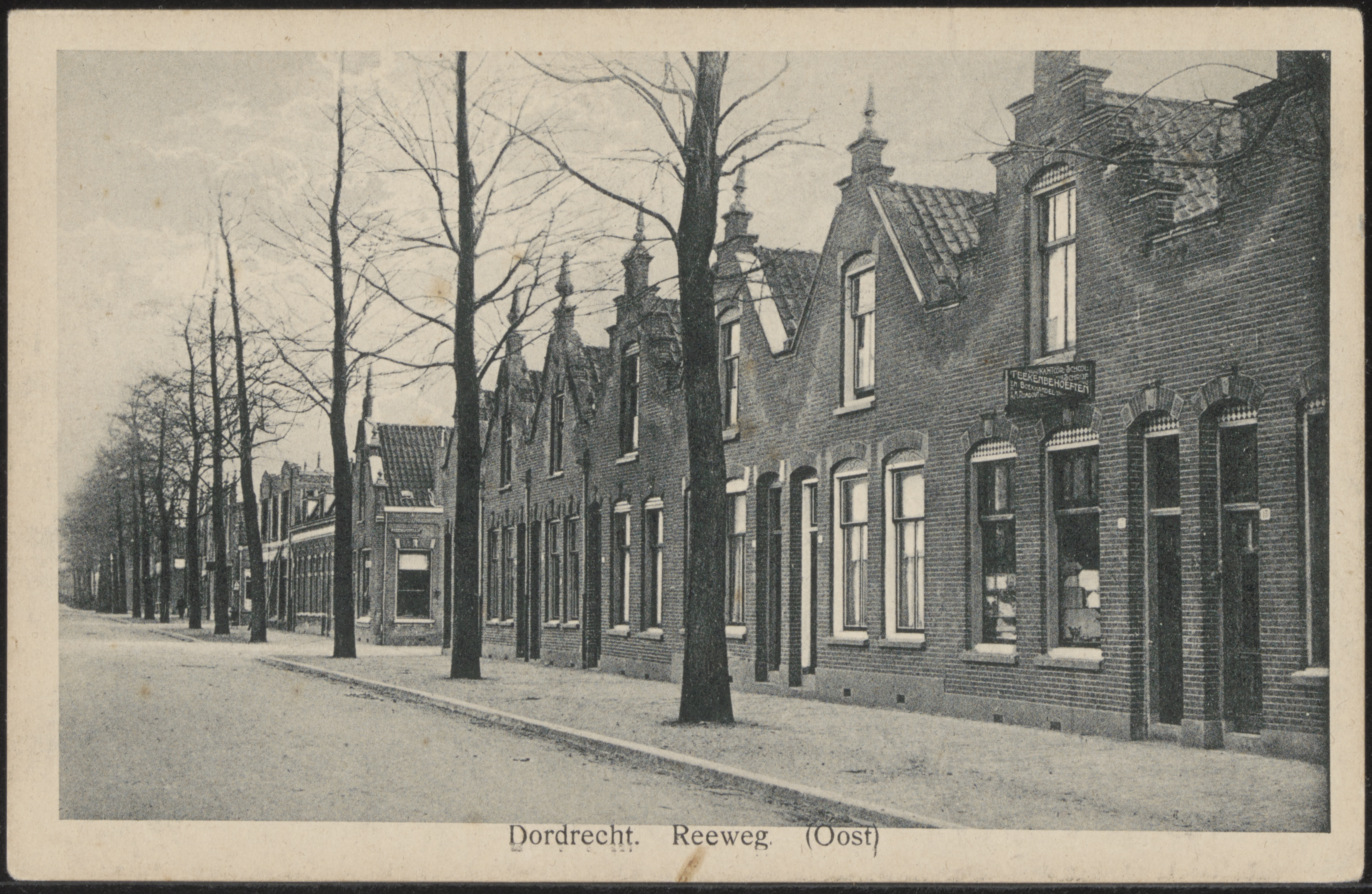 - Reeweg Oost in zuidoostelijke richting. Rechts vooraan de kantoorboekhandel van A.M. Rombout.