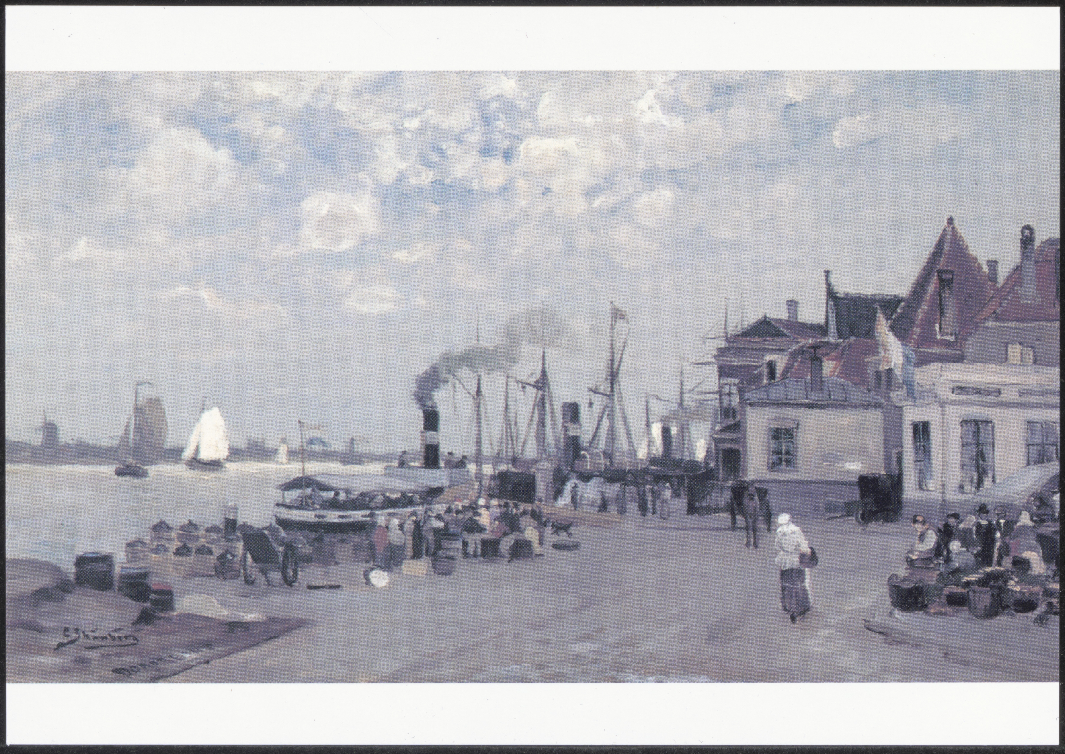 - Schilderij door de Zweedse schilder Carl Skånberg van de Merwekade nabij het Bolwerk. Aan de kade ligt het beurtschip naar 's-Hertogenbosch. Links de molen De Ruyter in Papendrecht.