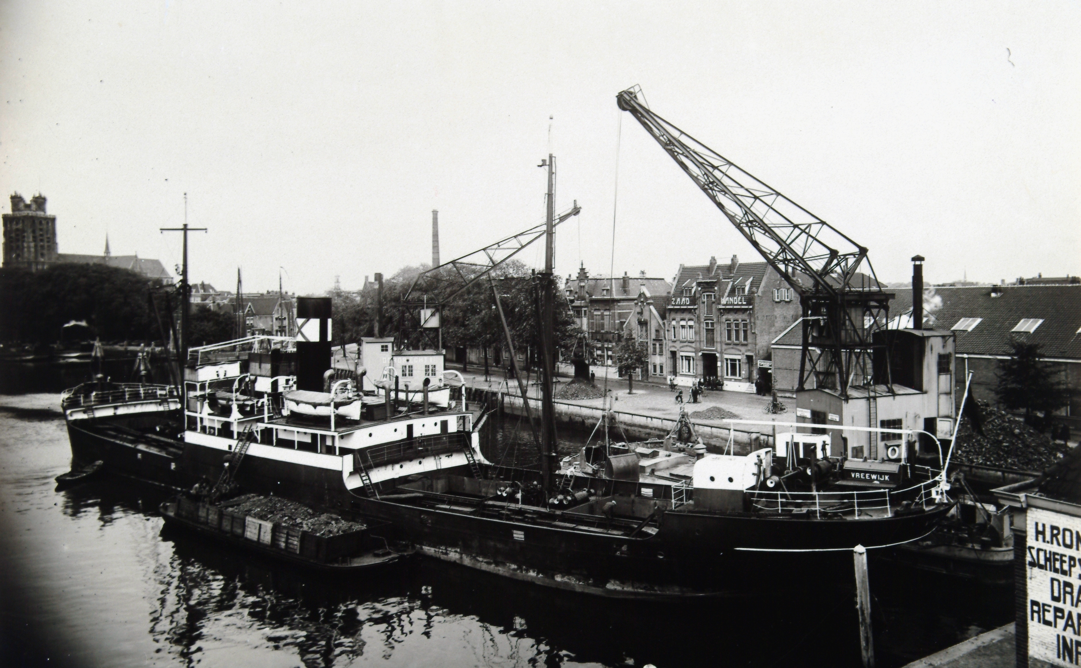 De Kalkhaven richting Achterhakkers gezien. De kranen zijn van de gemeente Dordrecht.