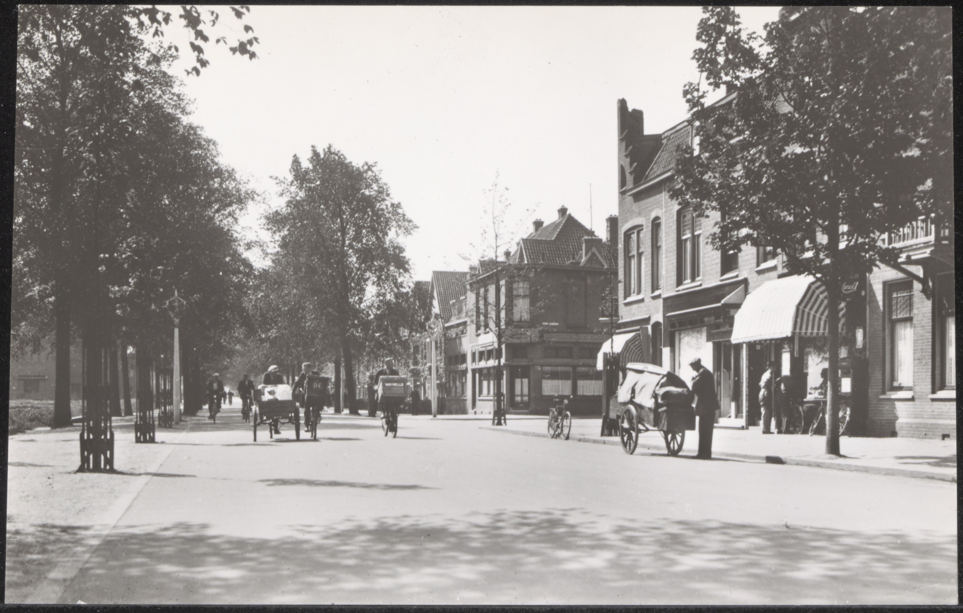 - Krispijnseweg in zuidelijke richting. Rechts de Jacob Catsstraat met café Sebes op ene en banketbakkerij Brokking op de andere hoek.
