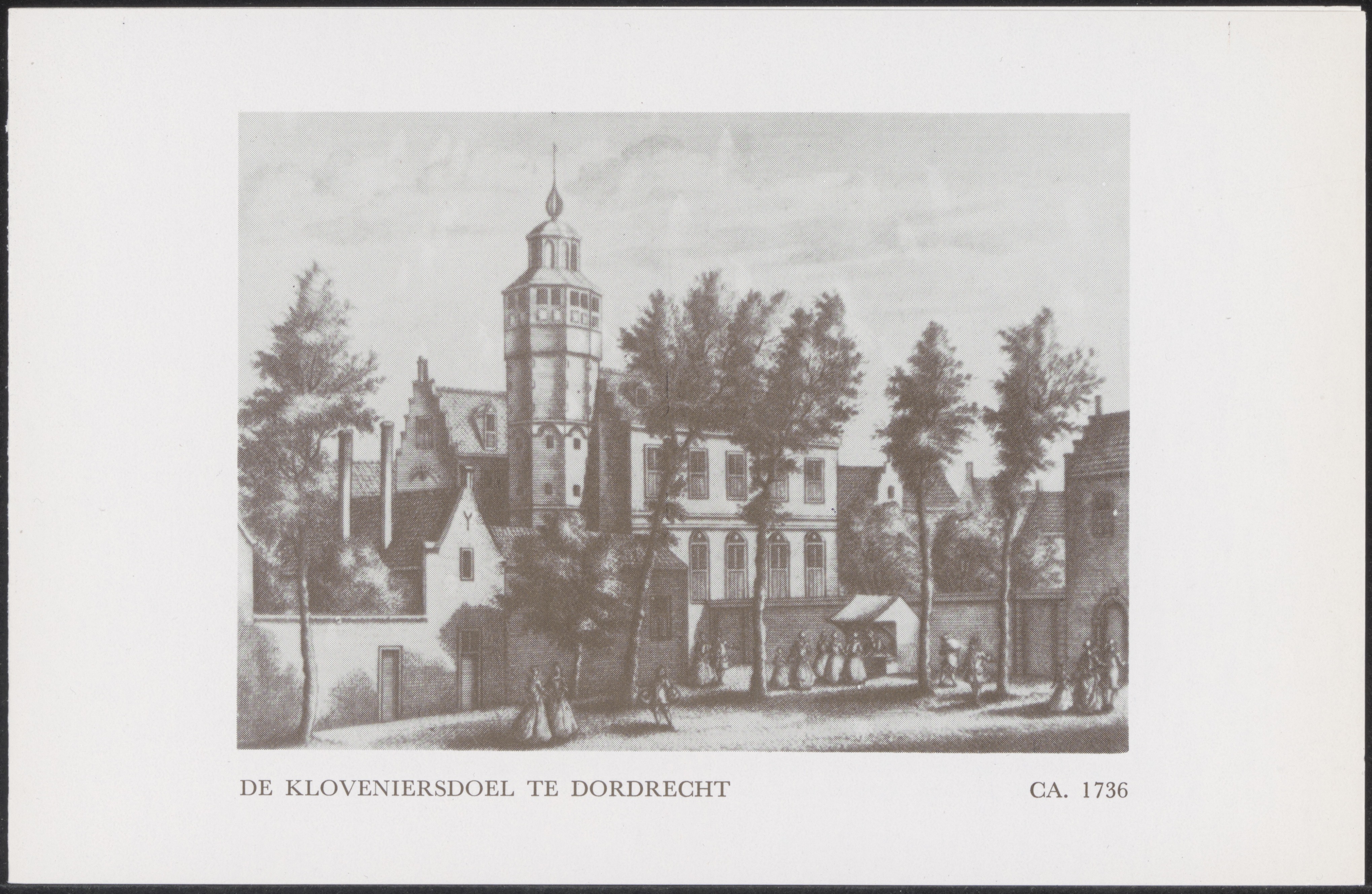 - Tekening van de Kloveniersdoelen, gezien vanuit het Stek.