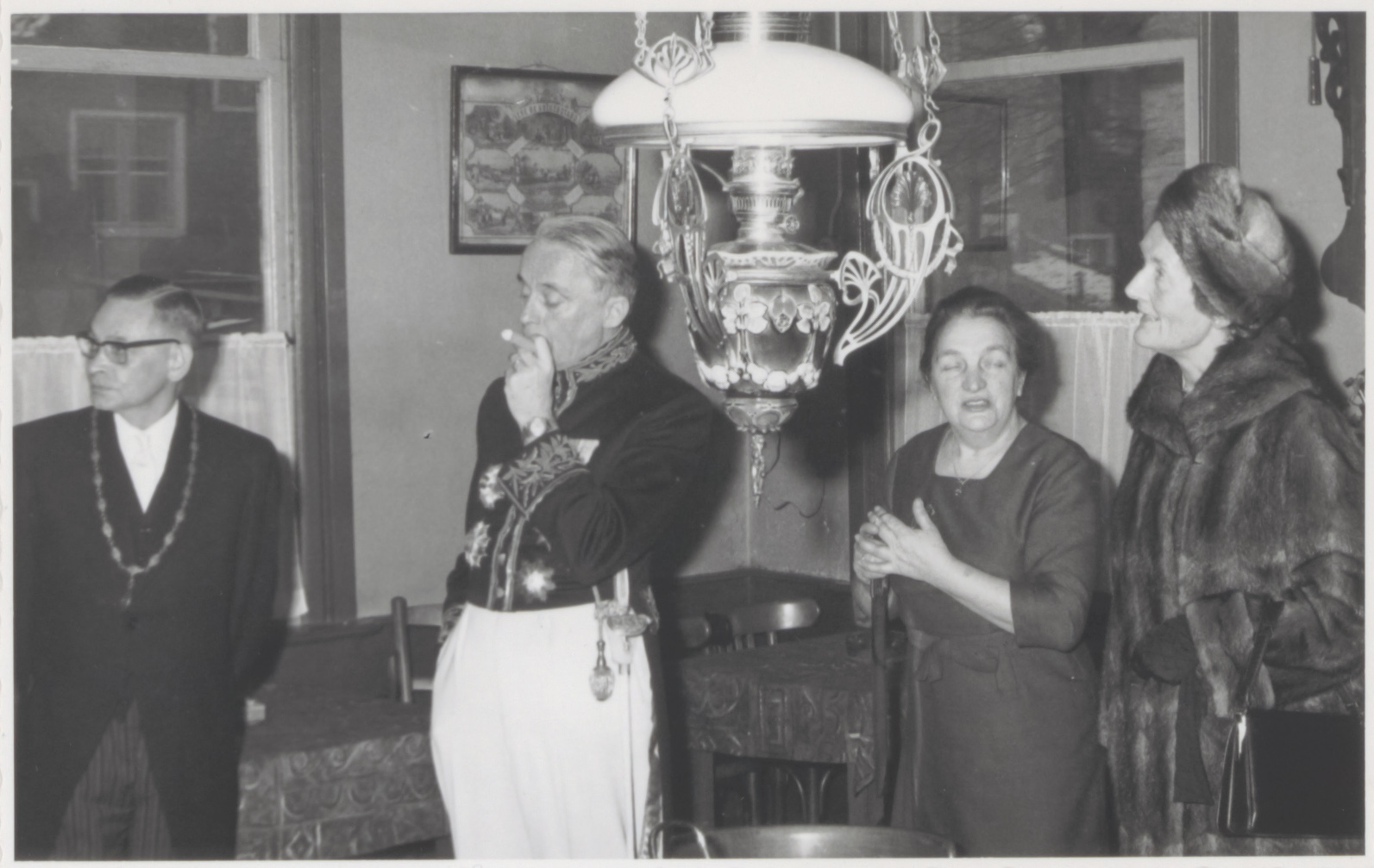 - V.l.n.r: burgemeester S. Top, commissaris van de Koningin Mr. J. Klaasesz, mw. Voorsluijs-den Hoed en mw. Klaasesz.