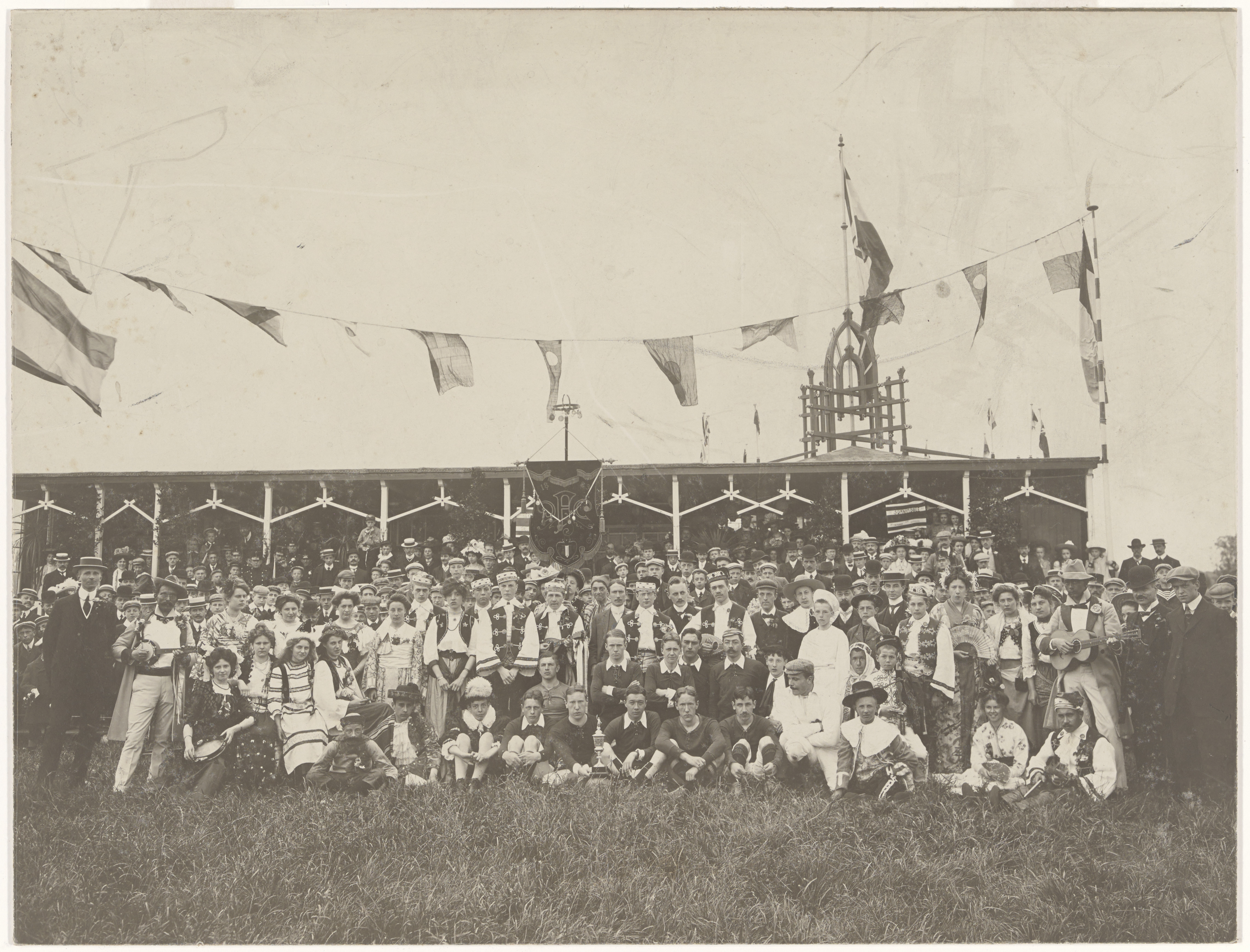 Groepsportret voor het clubgebouw aan de Marketteweg ter gelegenheid van het …