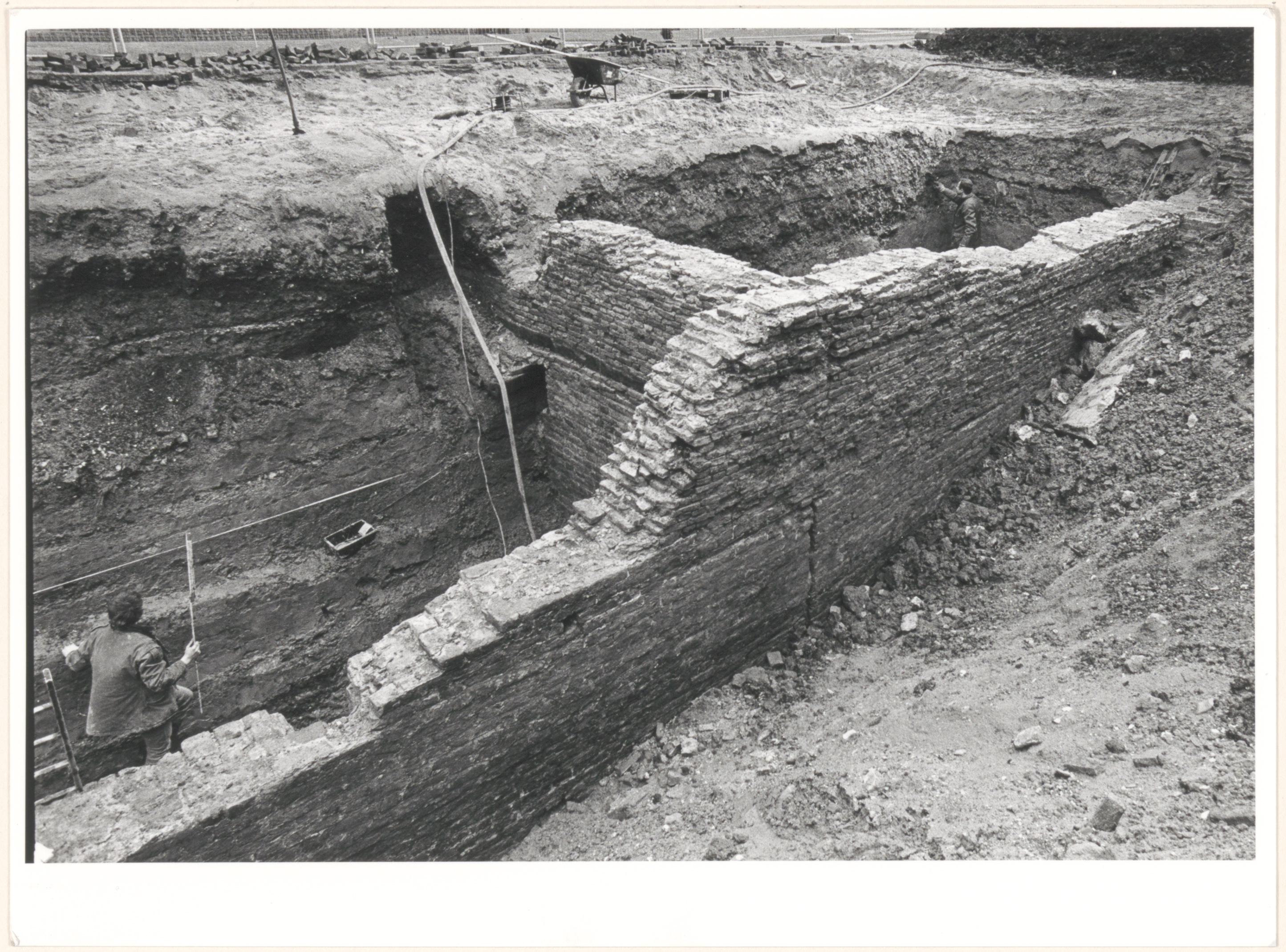 Opgraving door de R.O.B. aan De Waag, waarbij fundamenten van het huis Scharlaken uit …