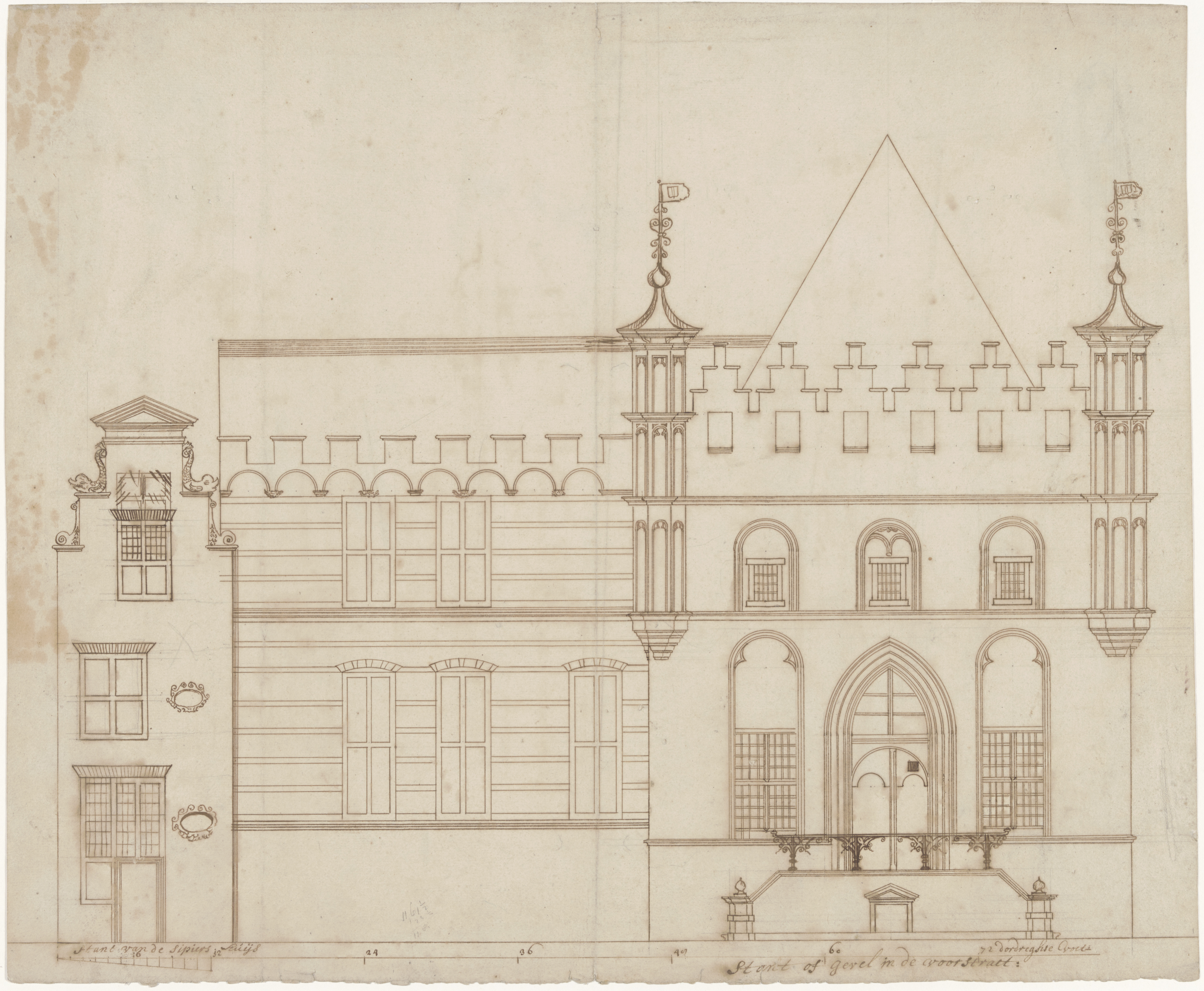 De zijgevels van het Stadhuis, op het Stadhuisplein.