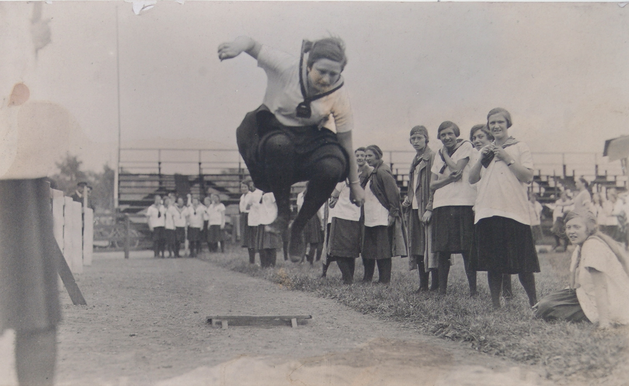 - Els v.d. Schilt, leerlinge van de HBS, springt ver op de sportdag van de school op het DFC-terrein aan de Markettenweg