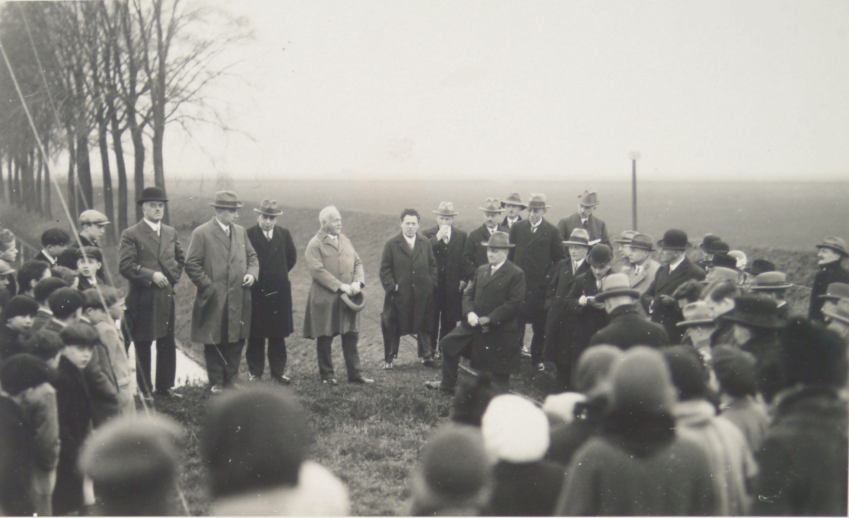 - Groepsportret van de aanwezigen op de boomplantdag aan de Oude Veerweg