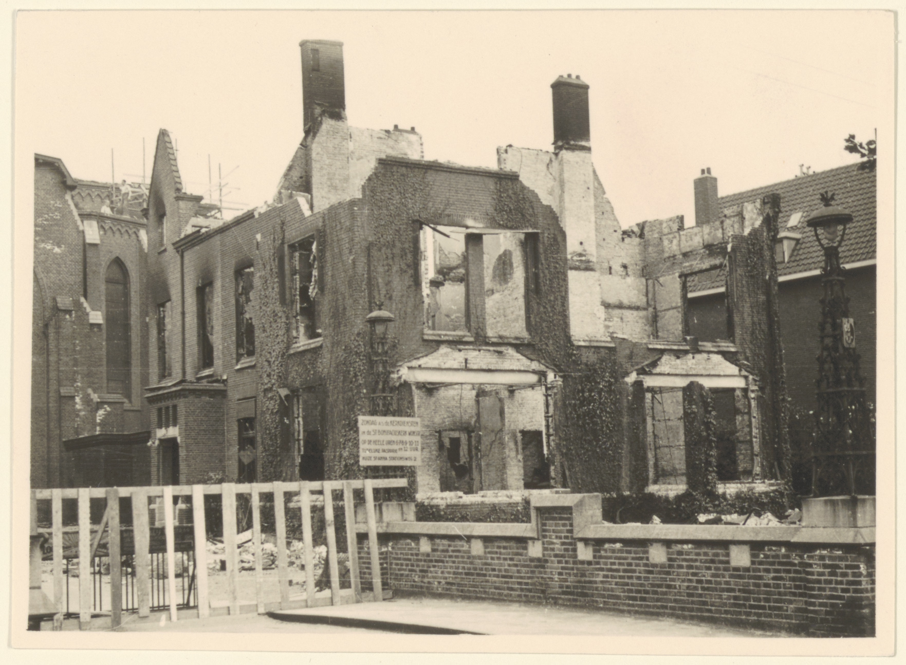 De tijdens de oorlogsdagen van mei 1940 vernielde pastorie van de R.K. Antoniuskerk aan de Burgemeester de Raadtsingel.
