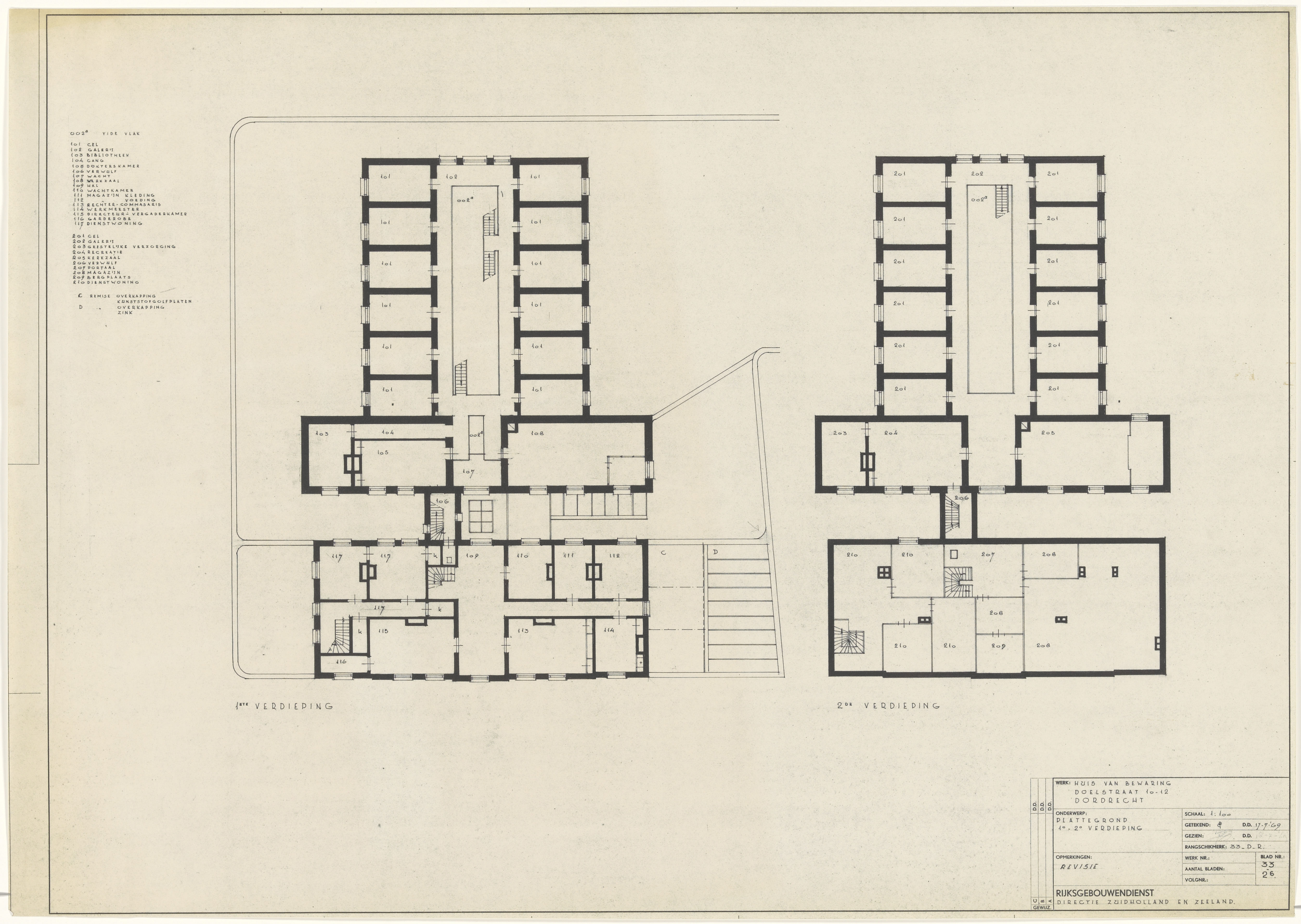 - Plattegrond van de 1e en 2e verdieping van het Huis van Bewaring aan de Doelstraat.