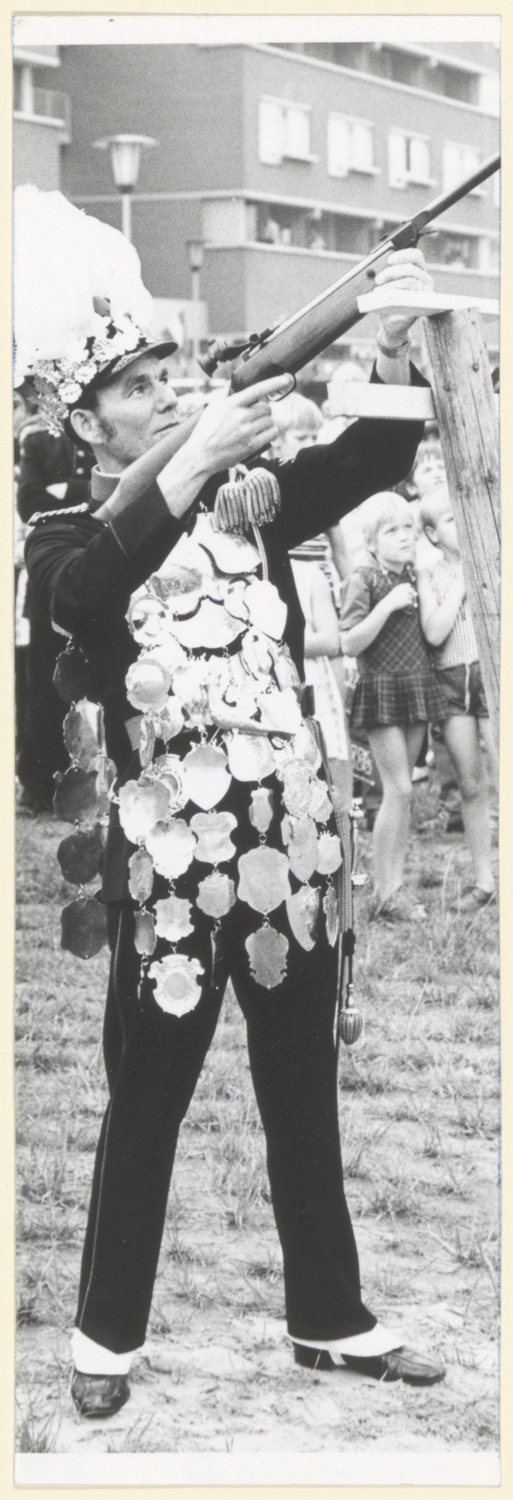 Een koning van de Limburgse Schutterij tijdens het koningsvogelschieten in de Limburgse …
