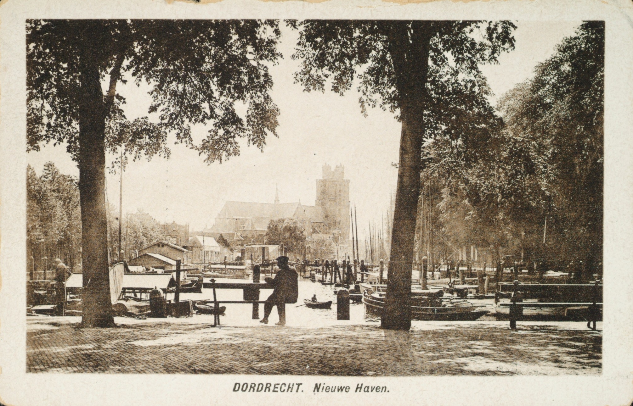 - Nieuwe Haven vanaf de Aardappelmarkt richting Grote Kerk. Links het botenhuis van de roei- en zeilvereniging aan de Knolhaven.