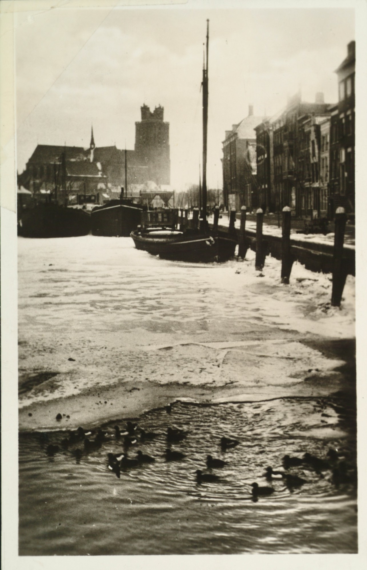 - Dichtgevroren Nieuwe Haven richting Grote Kerk.