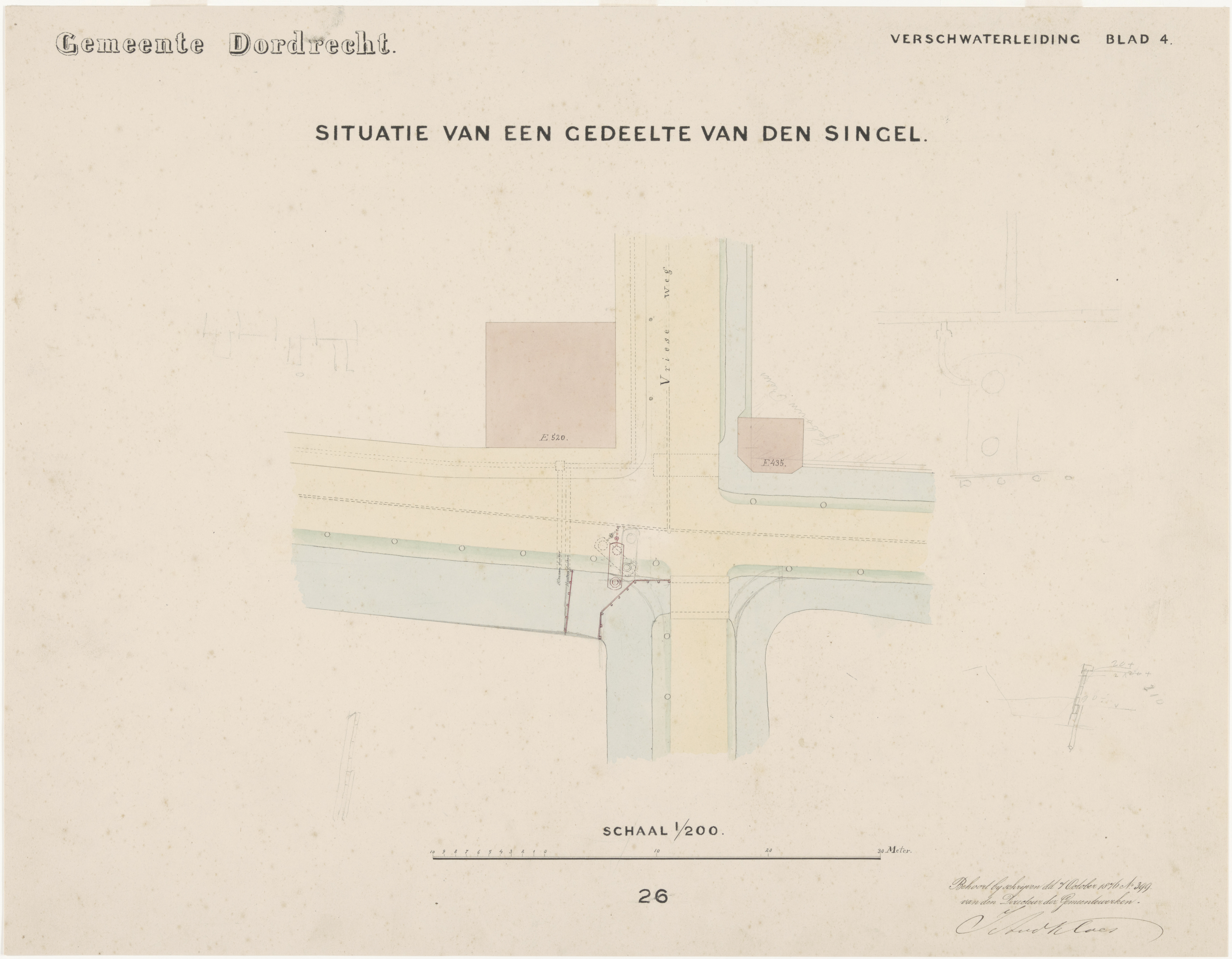 Kaart/tekening betreffende de aanleg van een verswaterleiding in het deel van Dordrecht …