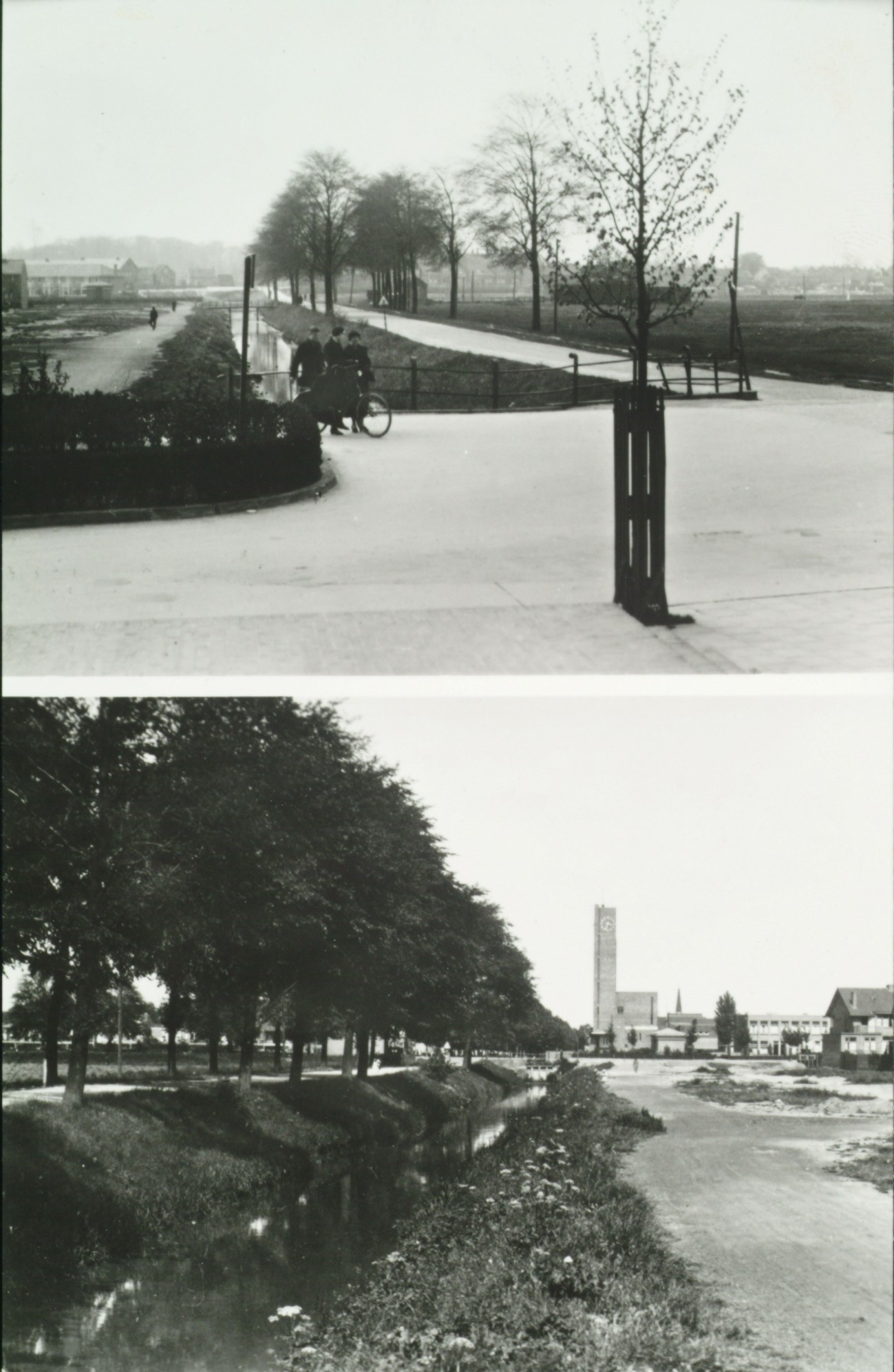 Boezemkade (de latere Frans Lebretlaan) richting Zuidendijk (boven) en richting Brouwersdijk.
