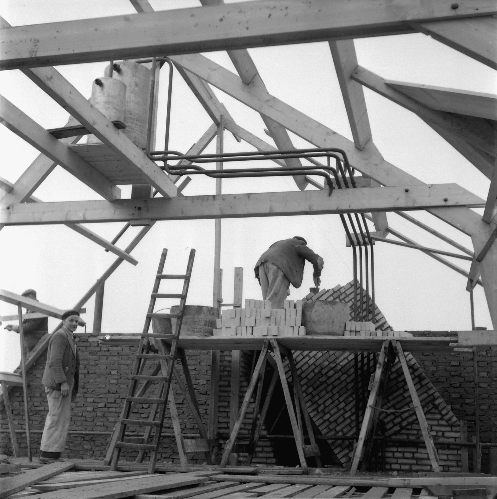 - Blauwpoortsplein. Bouwwerkzaamheden op het dak van het havenkantoor
