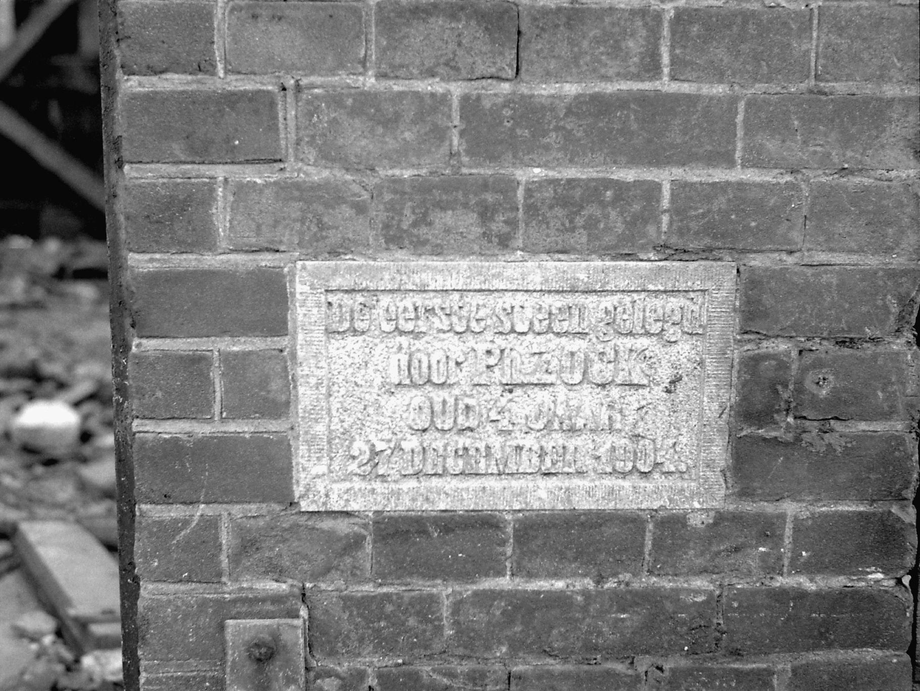 Muurtje met eerste steen 27 december 1904. Bleijenhoek