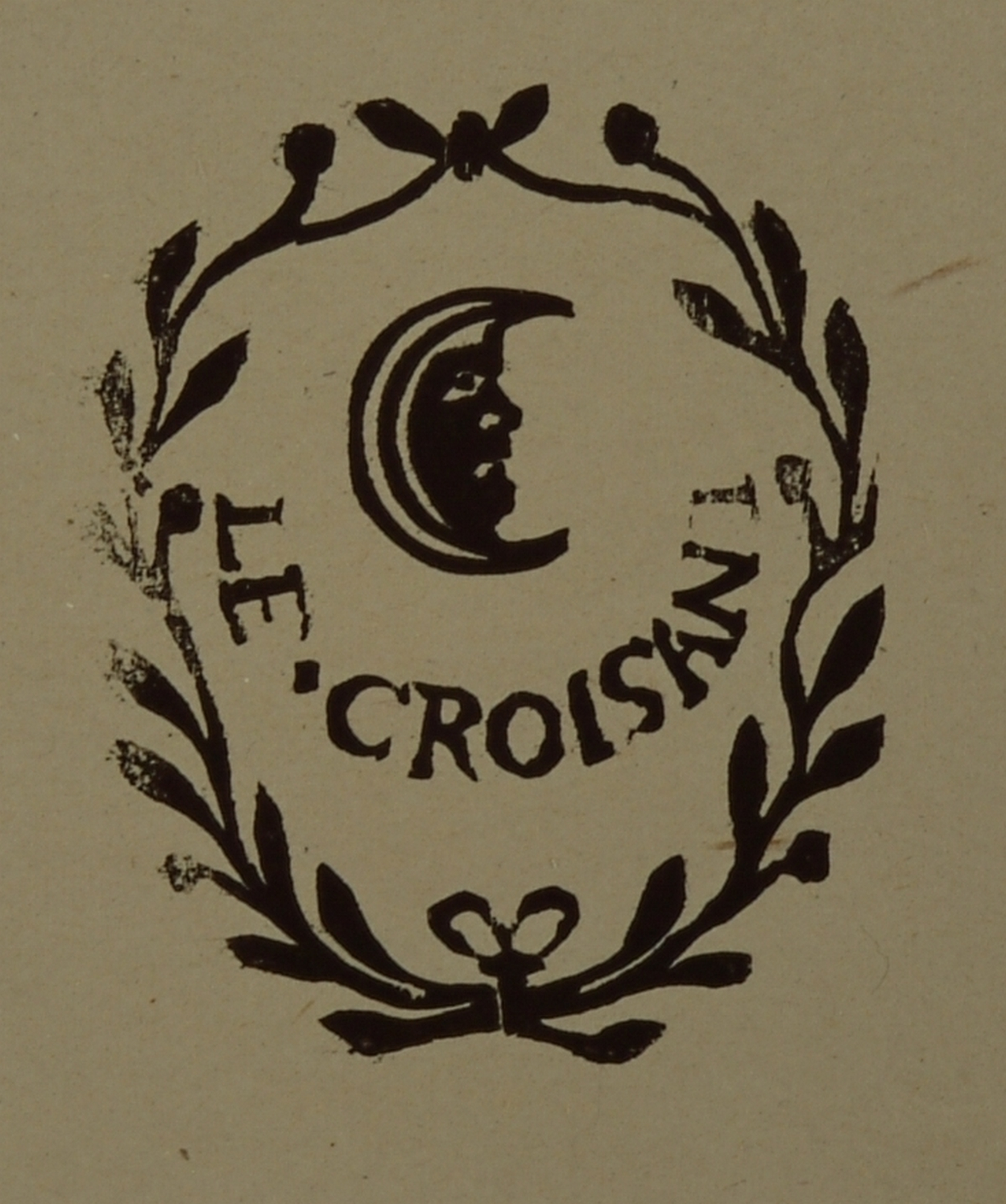 Etiket vermoedelijk van chocolade, met opschrift: Le Croisant