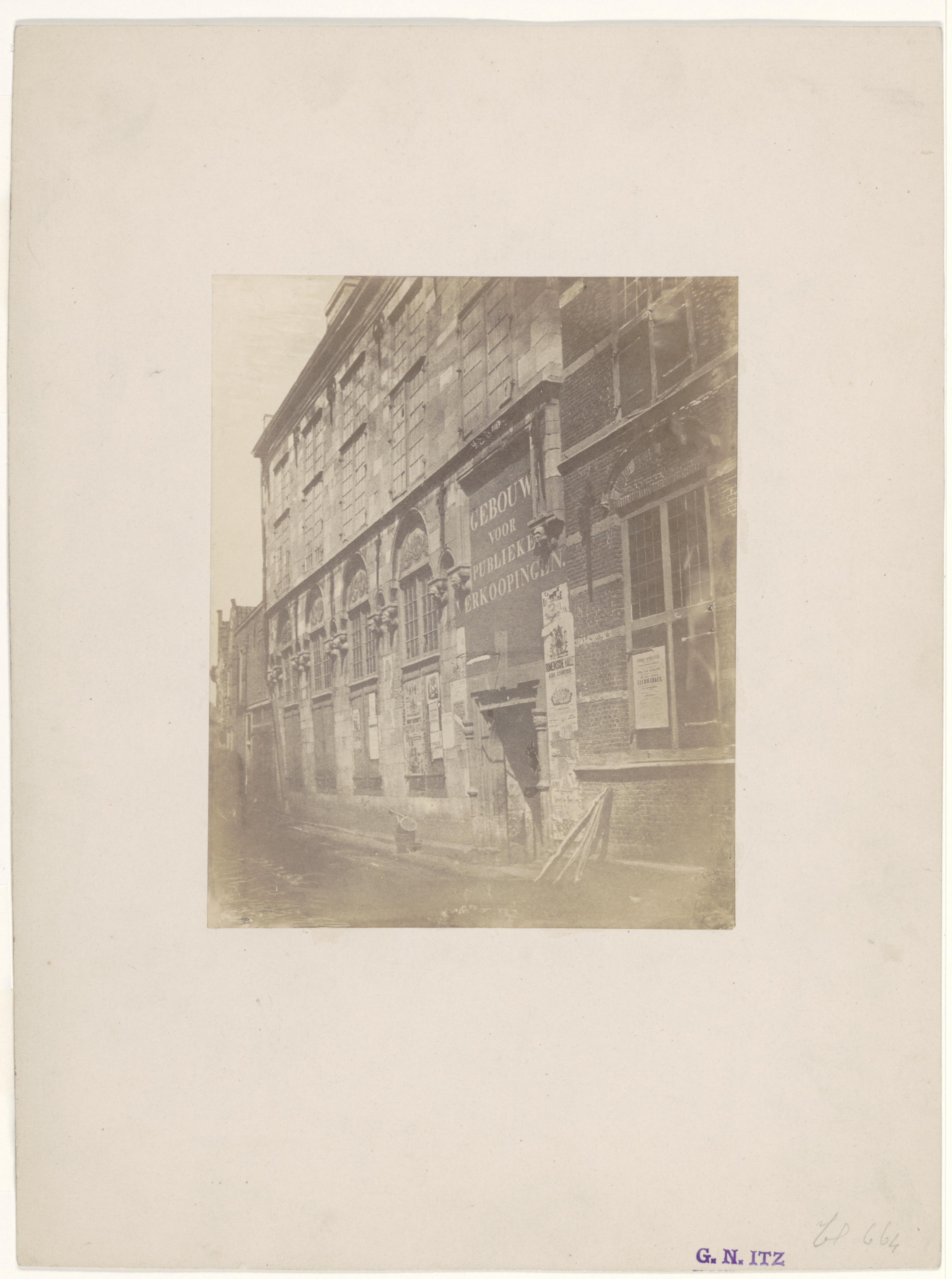 - De Kloveniersdoelen in de Doelstraat in gebruik als veilinggebouw kort voor de sloop in 1857.