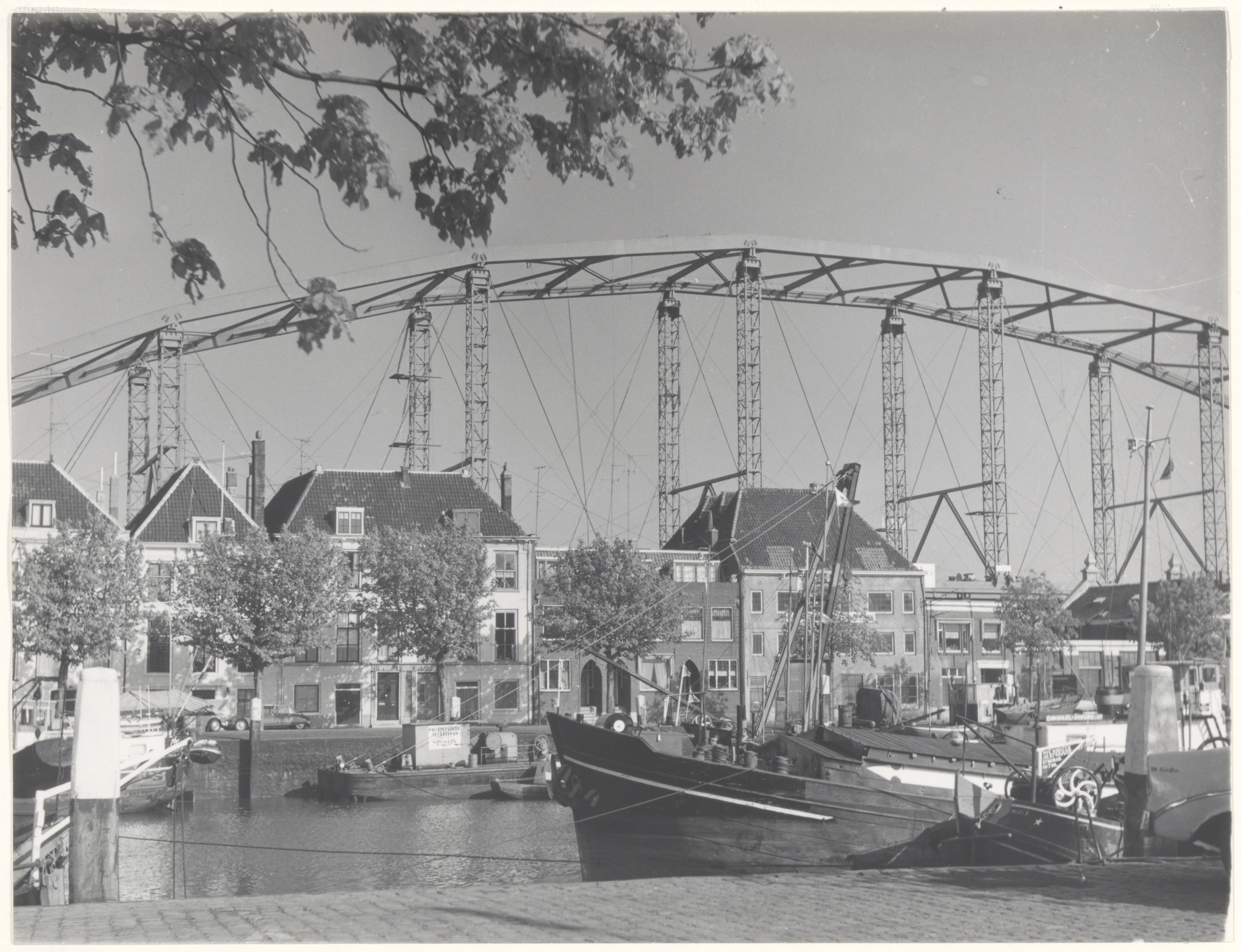 De boog van de Merwedebrug afgemeerd aan de Buiten Kalkhaven, gezien vanaf …