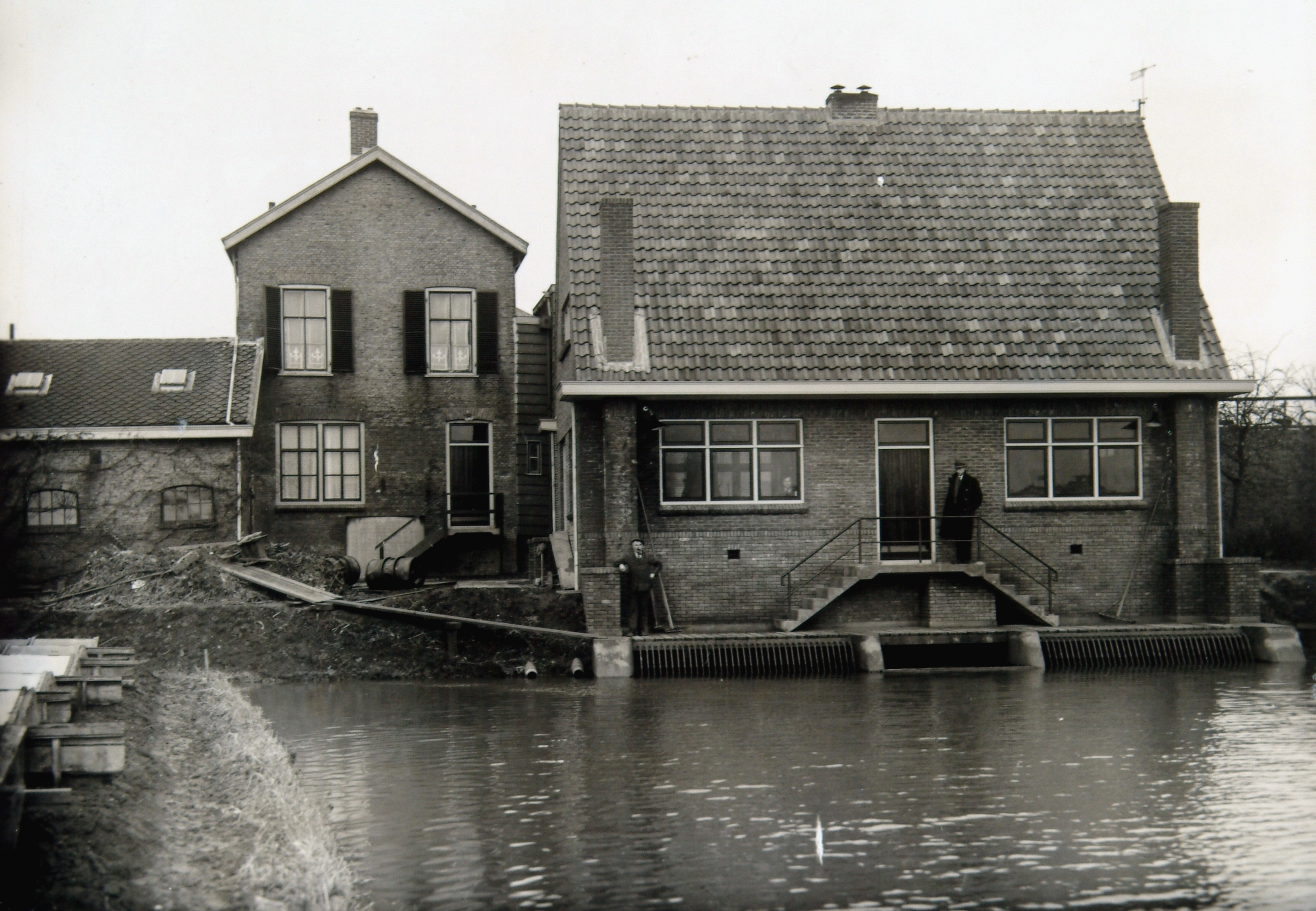Het watergemaal aan de zuidzijde van de Noordendijk. Verbouwingswerkzaamheden gaan van …