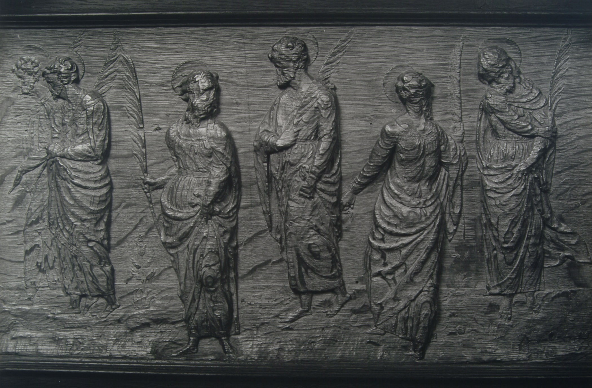 - Voorstelling in houtsnijwerk in de panelen van de koorbanken in de Grote Kerk