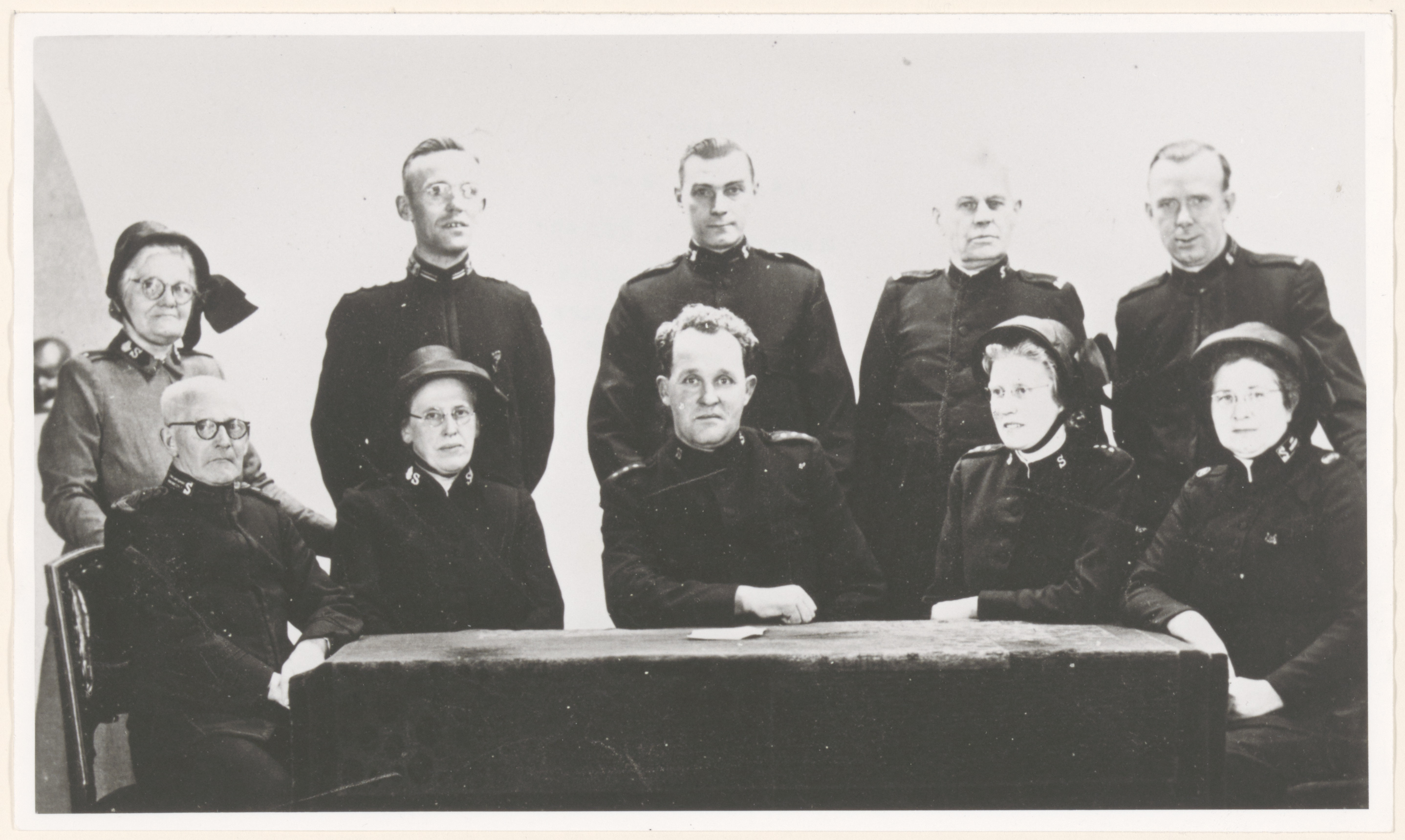 - Groepsportret van 10 soldaten van het Leger des Heils afdeling Dordrecht