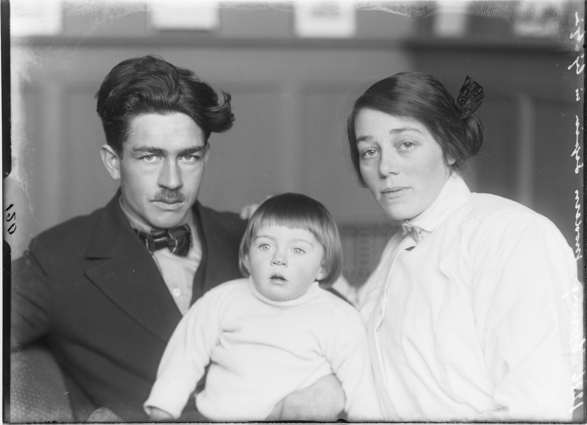 Jan Sprong (slager, z.v. Adrianus Sprong en Kaatje Huigen, 1897-1954) en Aaltje Geertruida Middelkoop (d.v. Jan Middelkoop en Antje Bikker, 1897-1926) met hun dochtertje Antje. Zij zijn gehuwd op 7 oktober 1921 in Leerdam en woonden daar ook. Hun dochter Antje (Ans) Sprong is geboren op 3 aug. 1922. De vader van Aaltje Geertruida Middelkoop (al vroeg weduwnaar), werkte bij de spoorwegen in Dordrecht en woonde daar ook. Waarschijnlijk de reden dat er in Dordrecht een fotograaf werd bezocht. Aaltje Geertruida Sprong-Middelkoop zou begin 1926, 3 jaar na het maken van deze foto overlijden. Jan Sprong hertrouwde eind 1926 met Gerritje Dirkje Bakker (1898-1963).