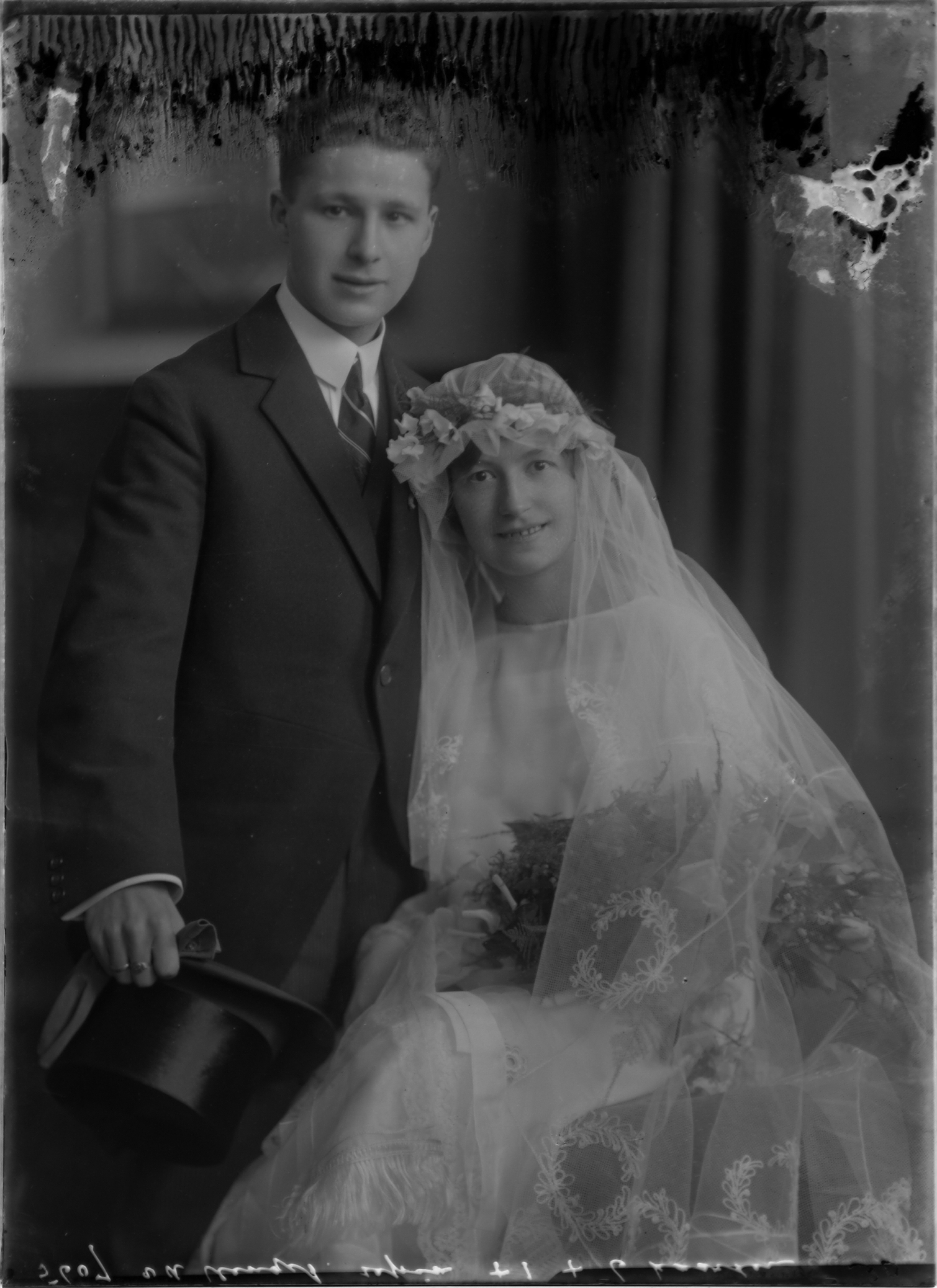 Willem van den Hengst, geb. Dordrecht 07-10-1901, en zijn bruid Johanna Esperester, geb. Kaiserslautern (Duitsland) 04-12-1900. Huwelijk te Dordrecht op donderdag 06-05-1926.