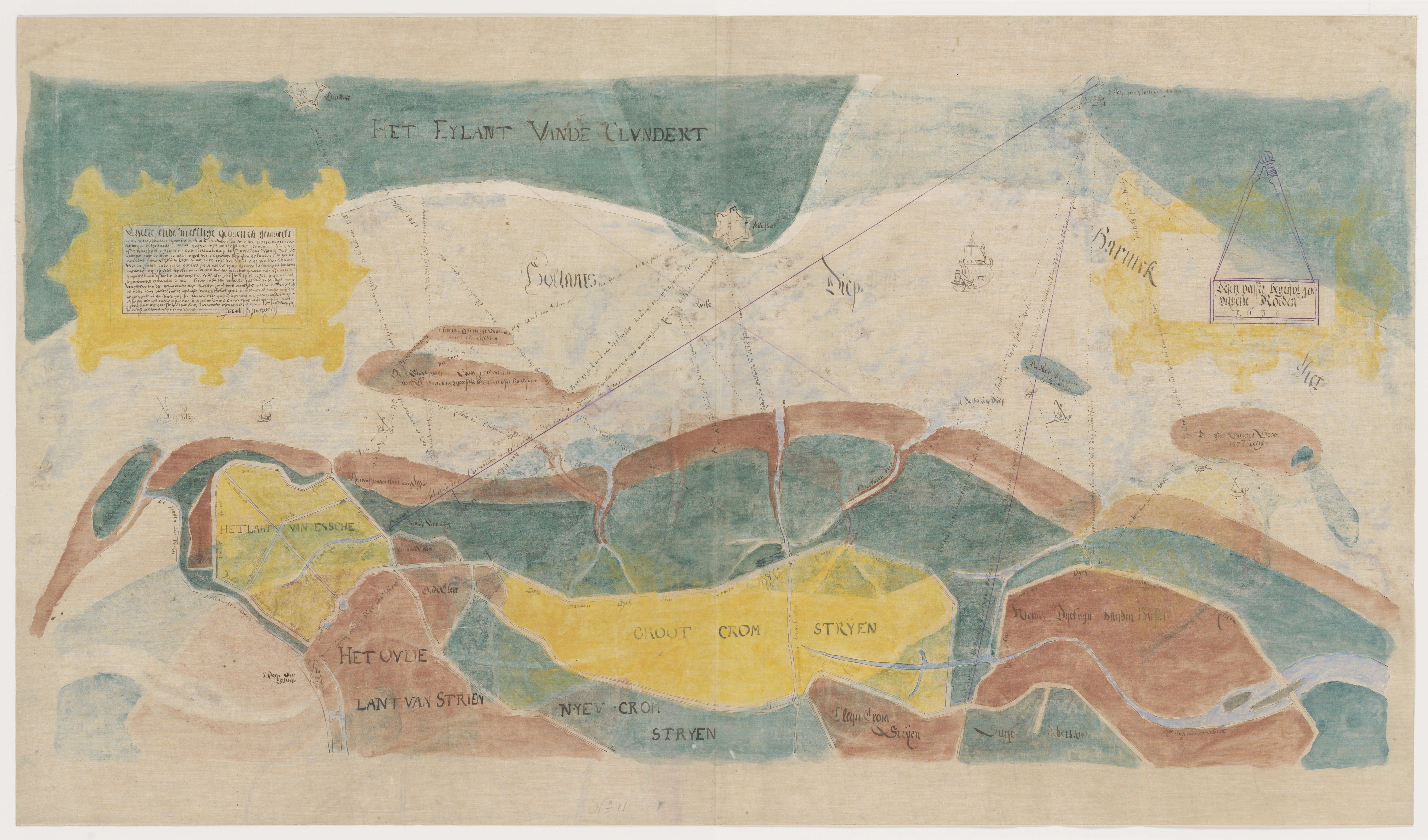 - Overzichtskaart van het zuiden van de Hoeksche Waard met daaronder de gronden van Brabant, door Jacob Sperwer 1639