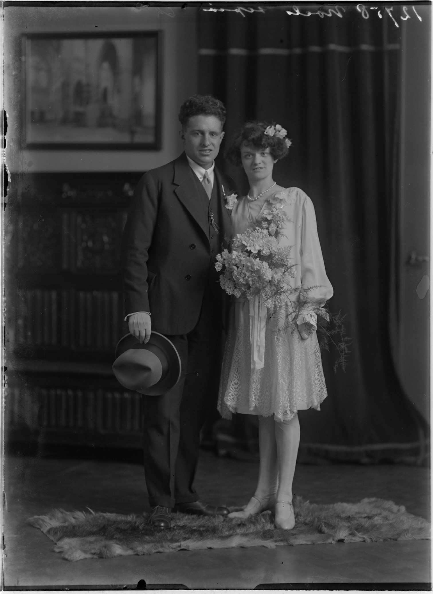 Dit is de huwelijksfoto van Cornelis Noels, machinist, zoon van Jan en Wilhelmina Zoutewelle, en zijn bruid Heiltje de Bruin, dochter van Jan Mijndert en Wieske van Aken. Het paar huwde te Dordrecht op donderdag 2 mei 1929.