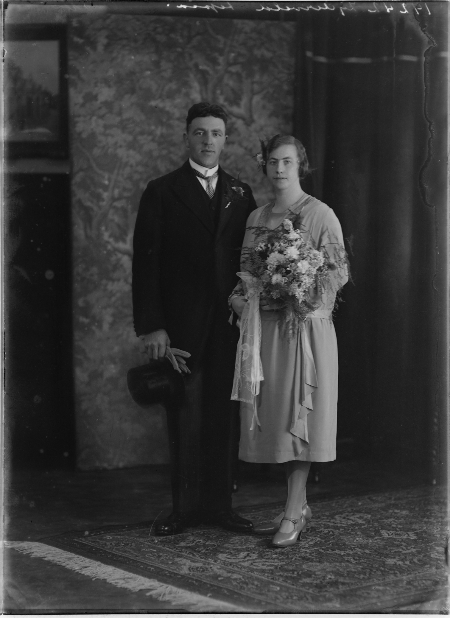 Gijsbertus Zijderveld, geb. H.I. Ambacht 05-09-1899, en zijn bruid Neeltje Wilschut, geb. H.I. Ambacht 15-06-1900.