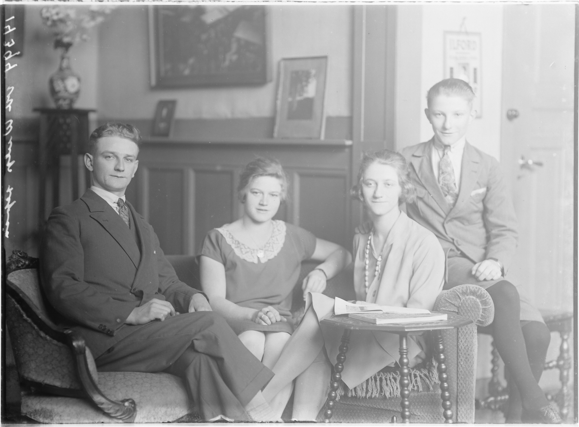 Janus (Adrianus), Frans (Francina), Adrie (Adriana) en Bas (Bastiaan) van der Wulp. Broers en zussen uit het gezin van Adrianus en Francina van der Wulp- de Vlaming.