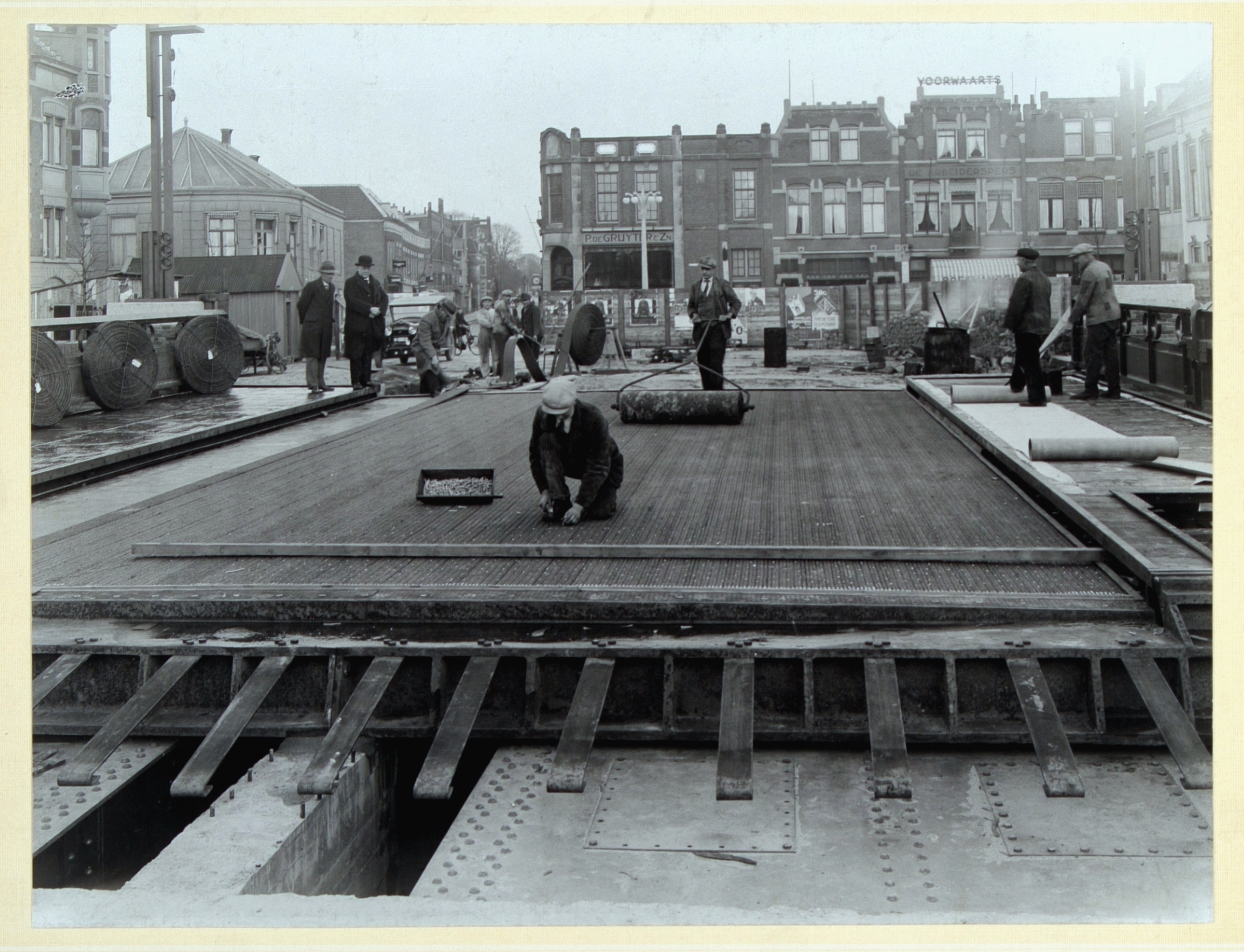 - arbeiders / werklieden bruggen bruggenbouw stoomwalsen