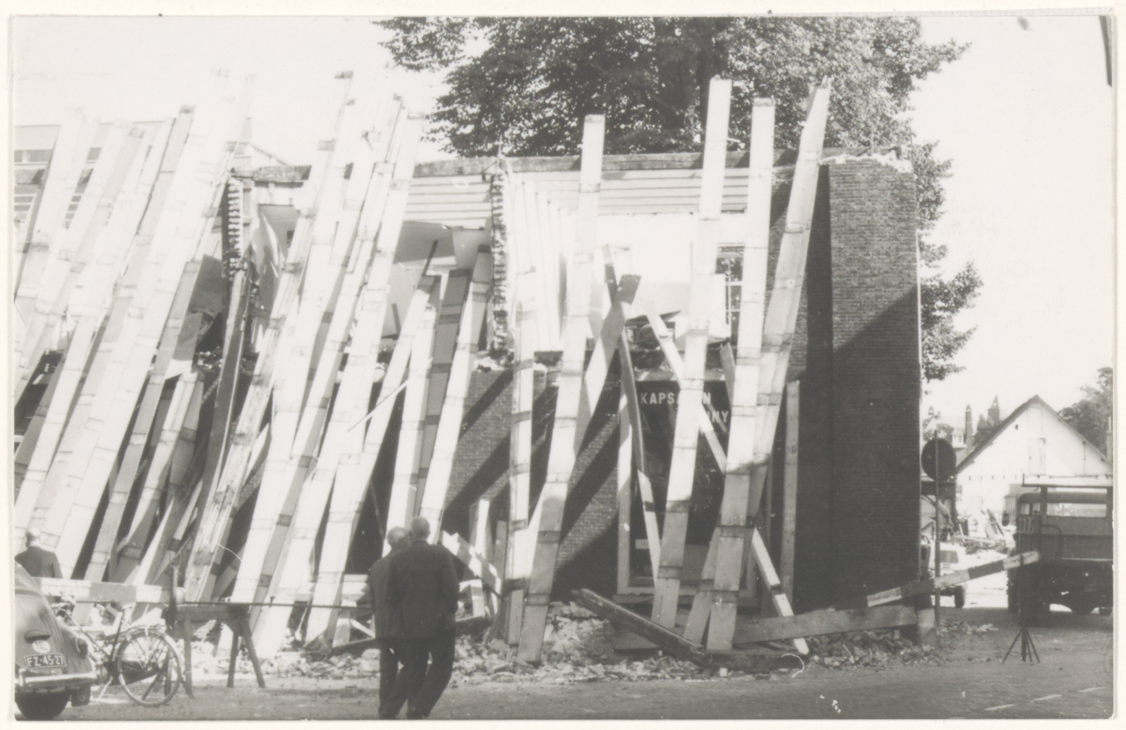 De sloop van het huis 's Lands Werf, ook wel genoemd commandantshuis of kapiteinshuis, op de noordelijke hoek Cornelis de Wittstraat/Spuistraat. Het in 1856 gebouwde huis was oorspronkelijk de woning van de commandant van de pontonniers; in de 20e eeuw heeft het een sociëteit, poffertjeskraam en ten laatste dameskapper Lonny gehuisvest.