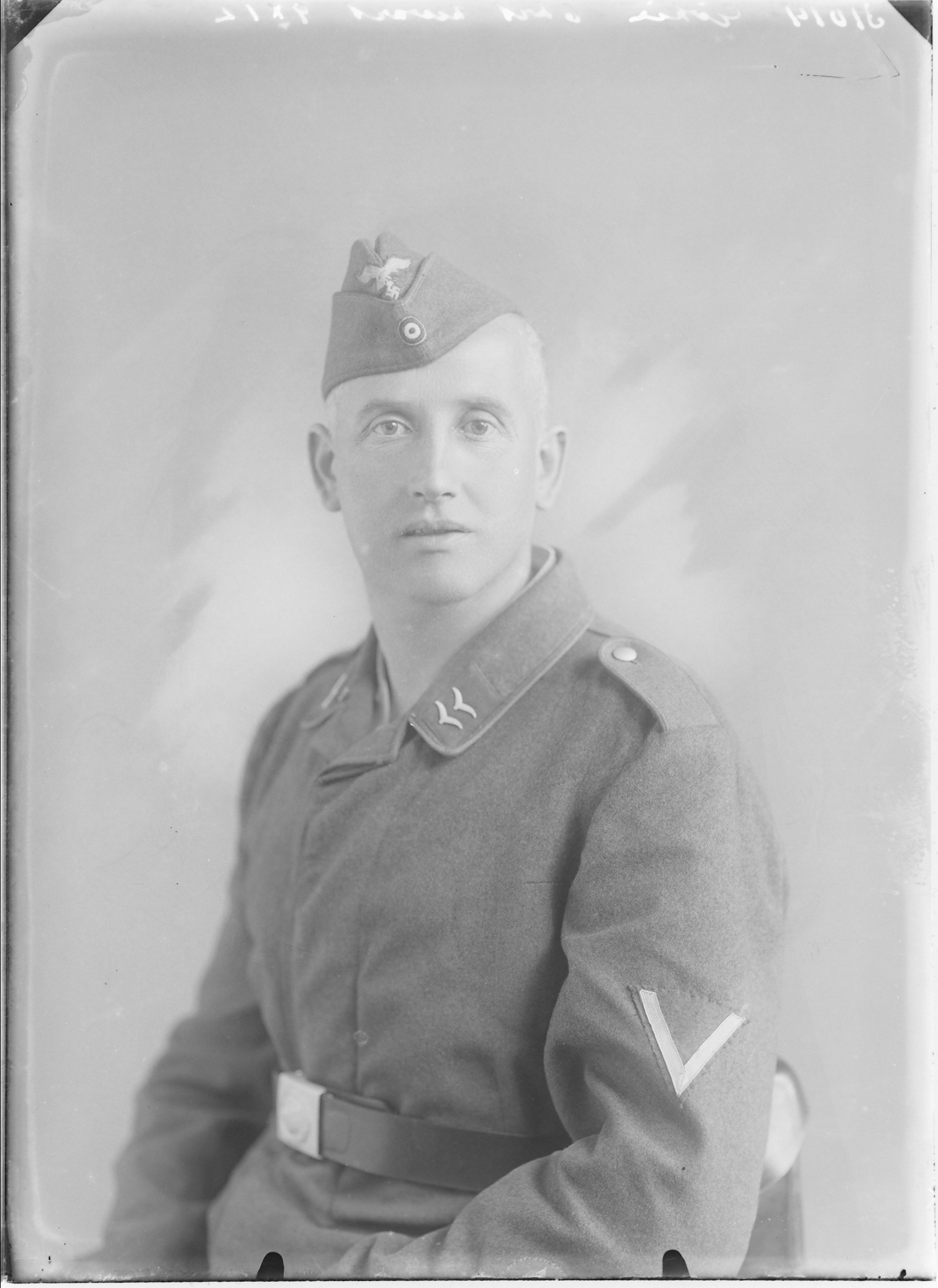Een Duitse gefreiter van de Luftwaffe heeft zich hier op de gevoelige plaat laten vastleggen.