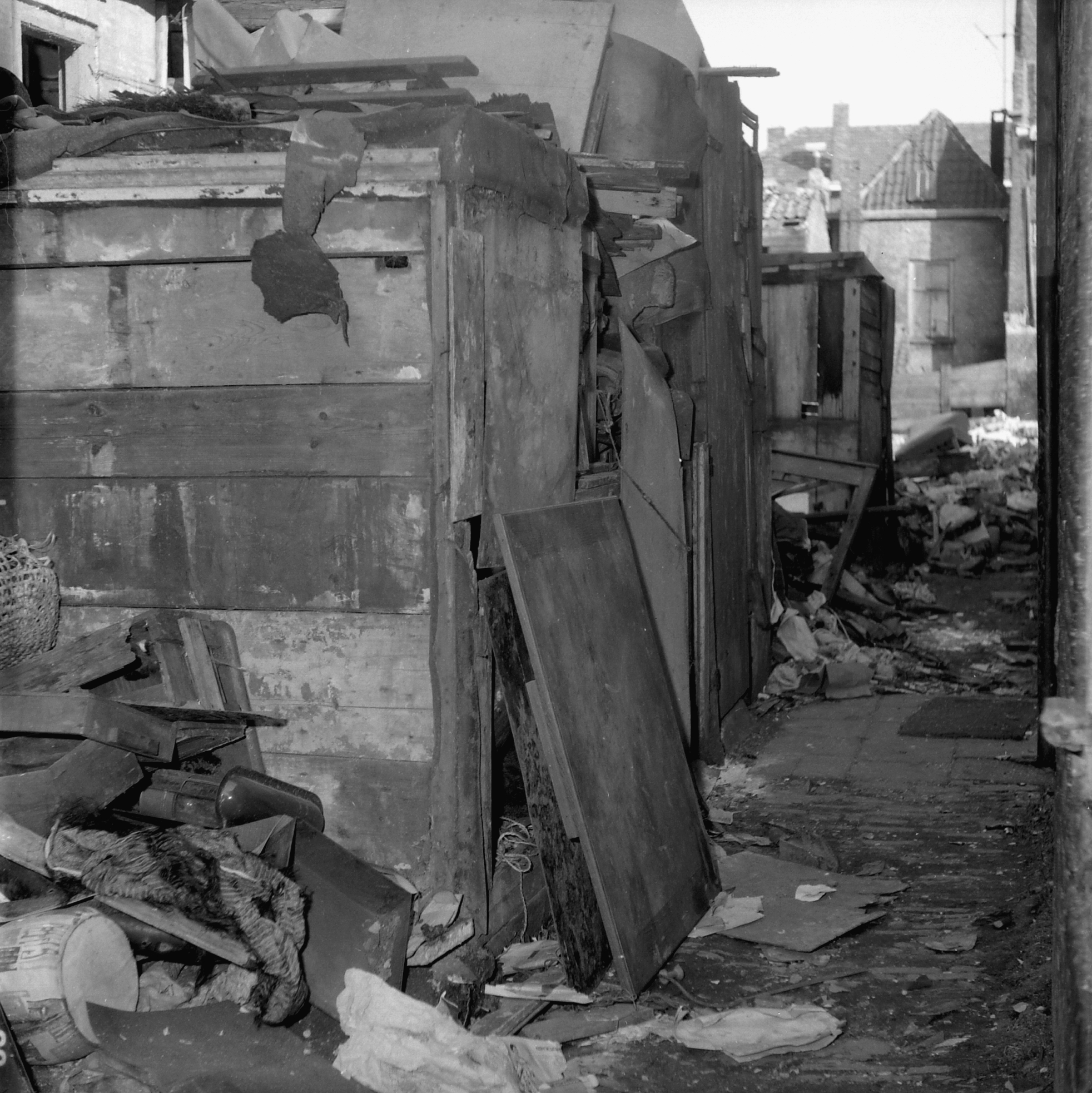 - Slopen van woningen in hof Het Kruis aan zuidkant van de Heer Heymansuysstraat tussen Voorstraat en Wijngaardstraat.