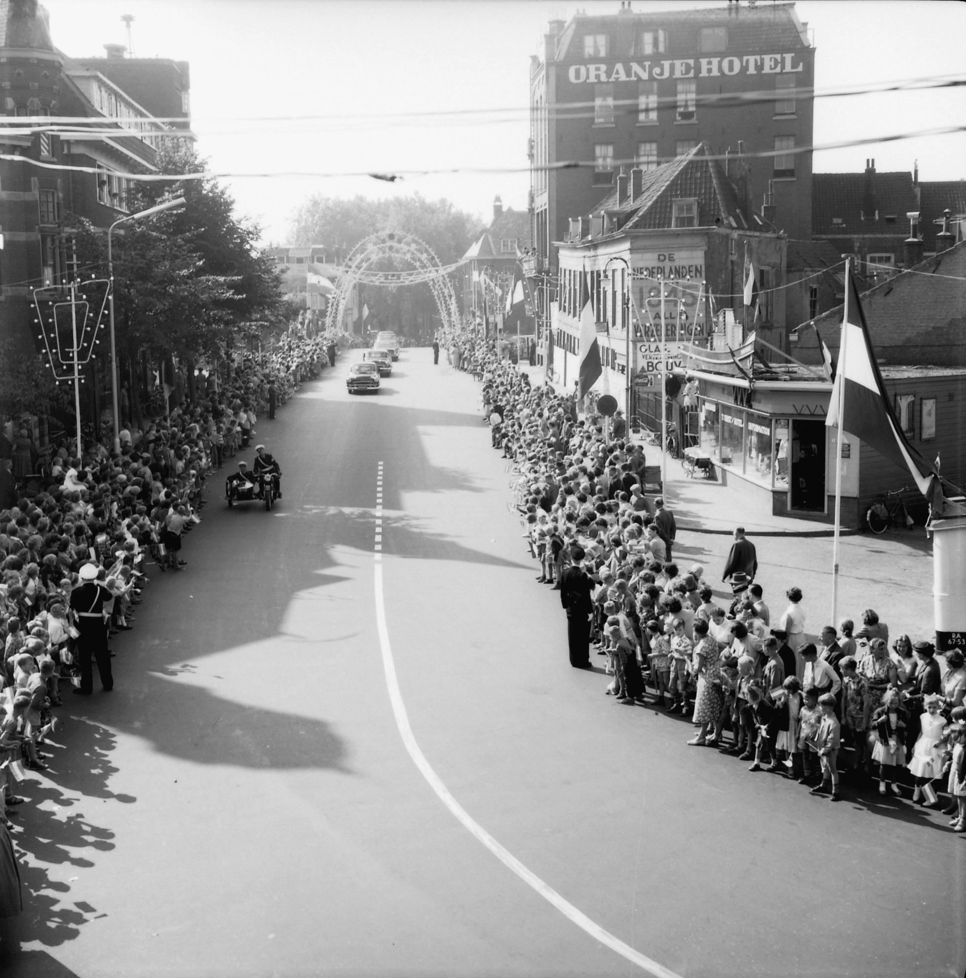 - Johan de Wittstraat. Mensen wachtend op de komst van Koningin Juliana vanwege de opening van de Zeehaven