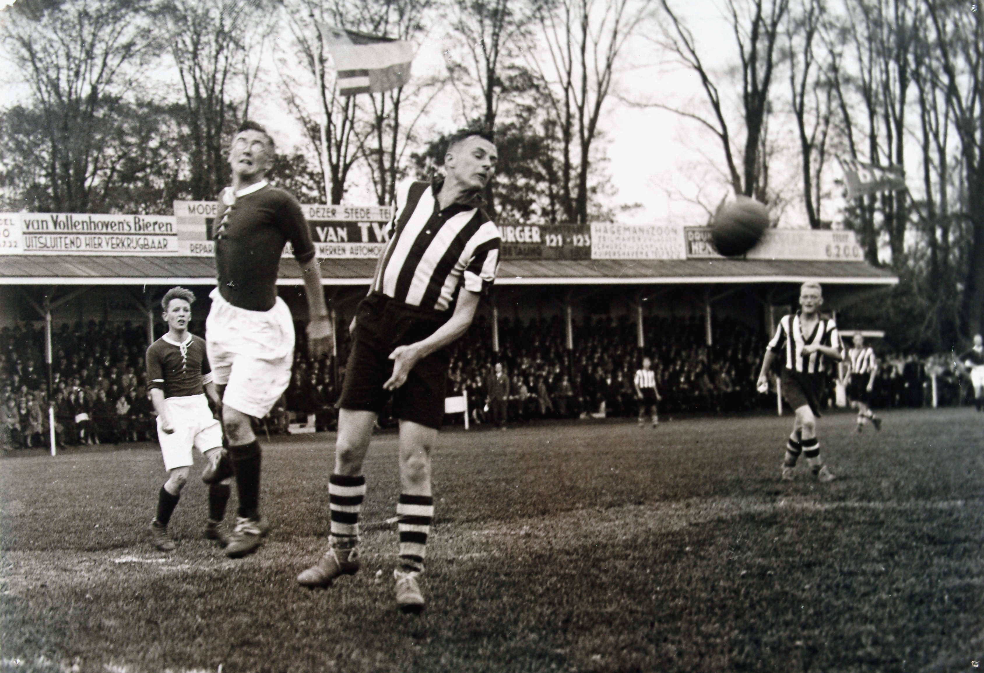 - De D.F.C’ers E. Ruisch en Jan Vos Jr. in actie tegen Sparta op het terrein aan de Markettenweg. 28 oktober 1934