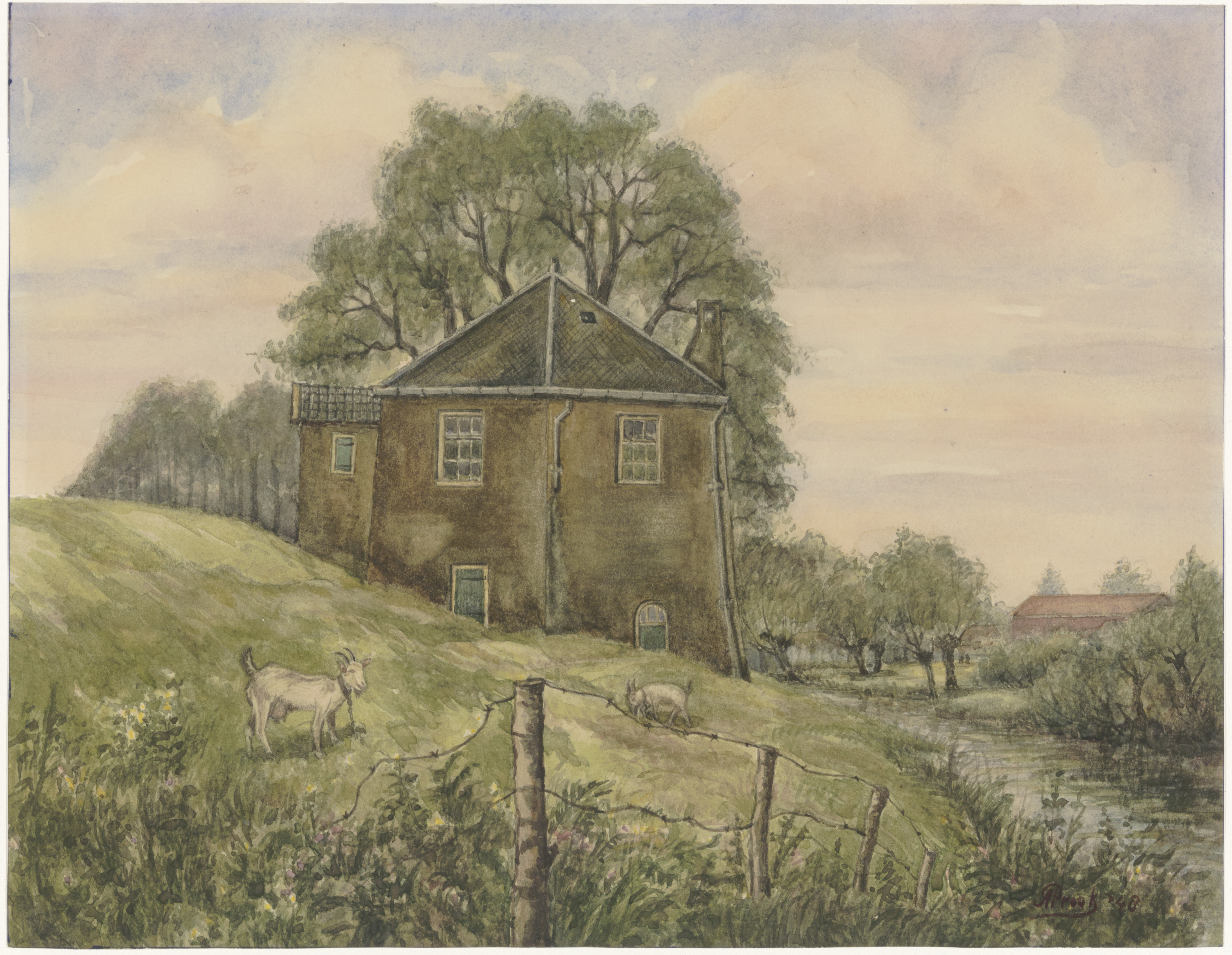 - aquarellen geiten knotwilgen molens sloten