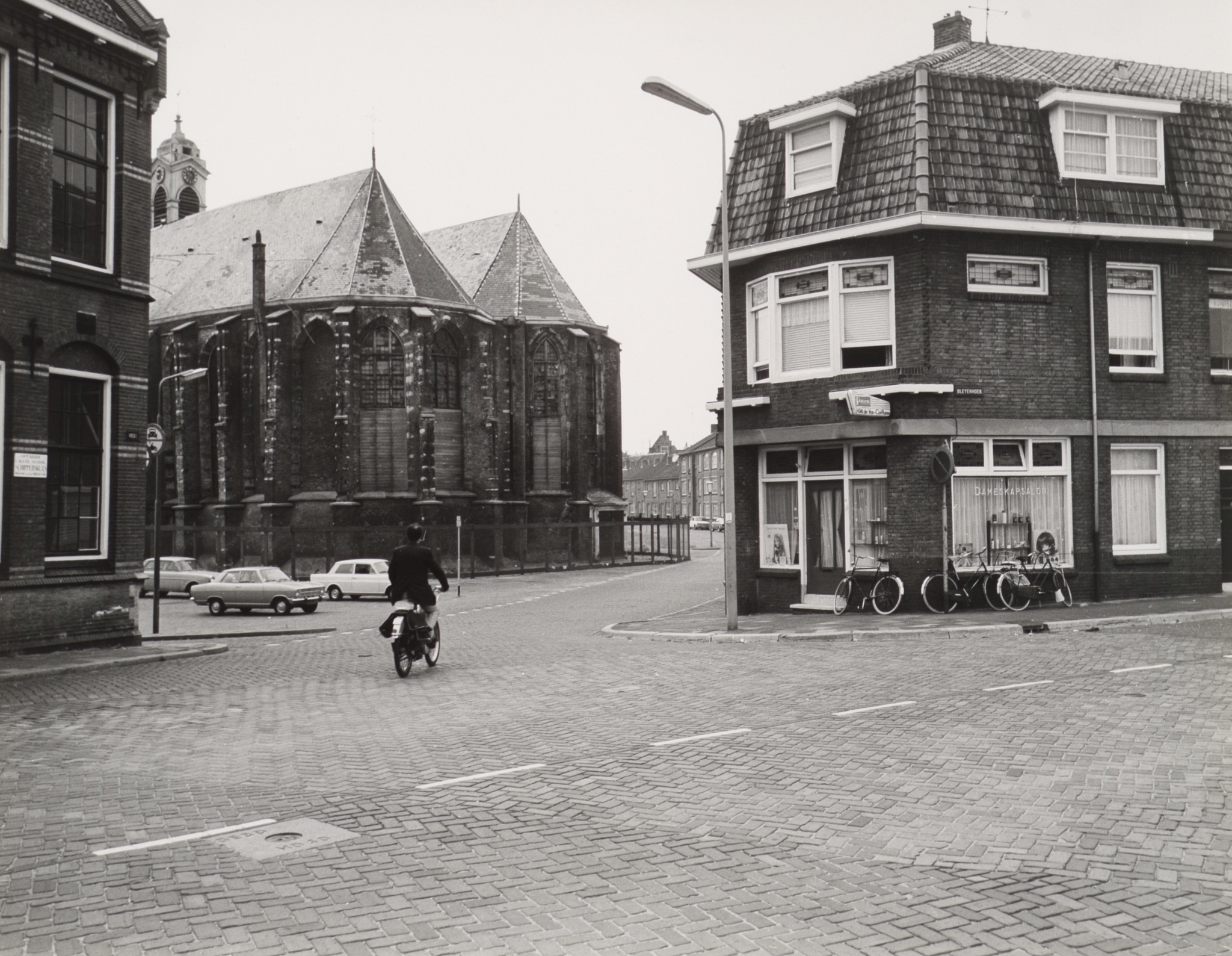 - bromfietsen / brommers fietsen / rijwielen kappers / kapsalons kerken lantaarns / straatverlichting