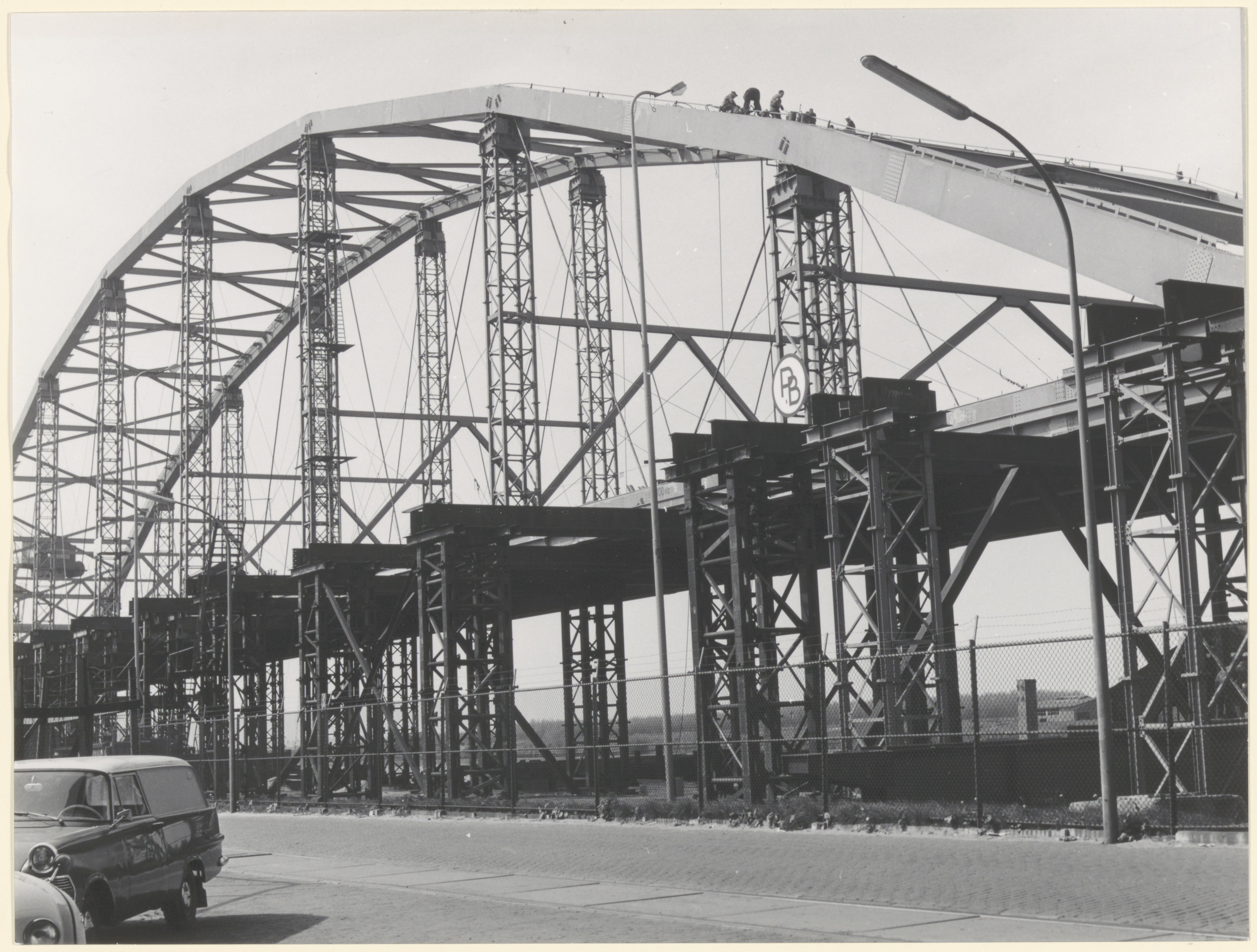 - Bouw van de boog van de Merwedebrug op de werf van Penn & Bauduin aan de 's-Gravendeelsedijk.