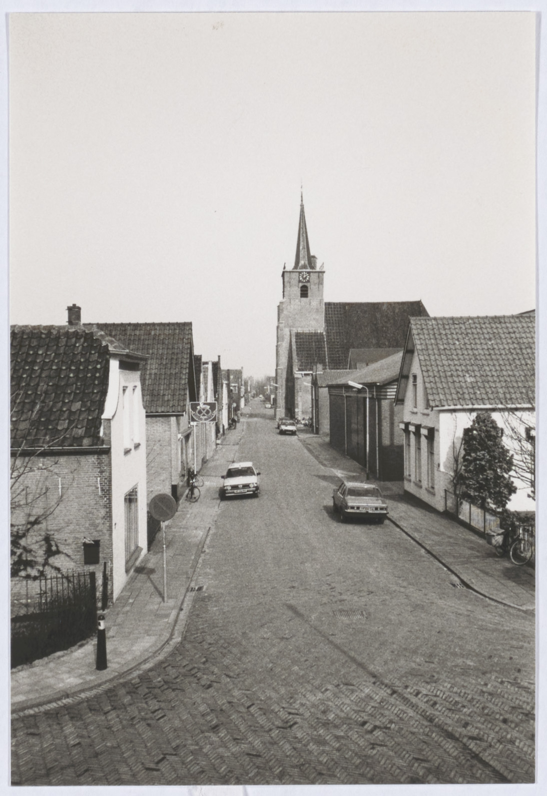 De Torenstraat vanaf de Schuringsedijk richting de kerk van de Hervormde Gemeente in …