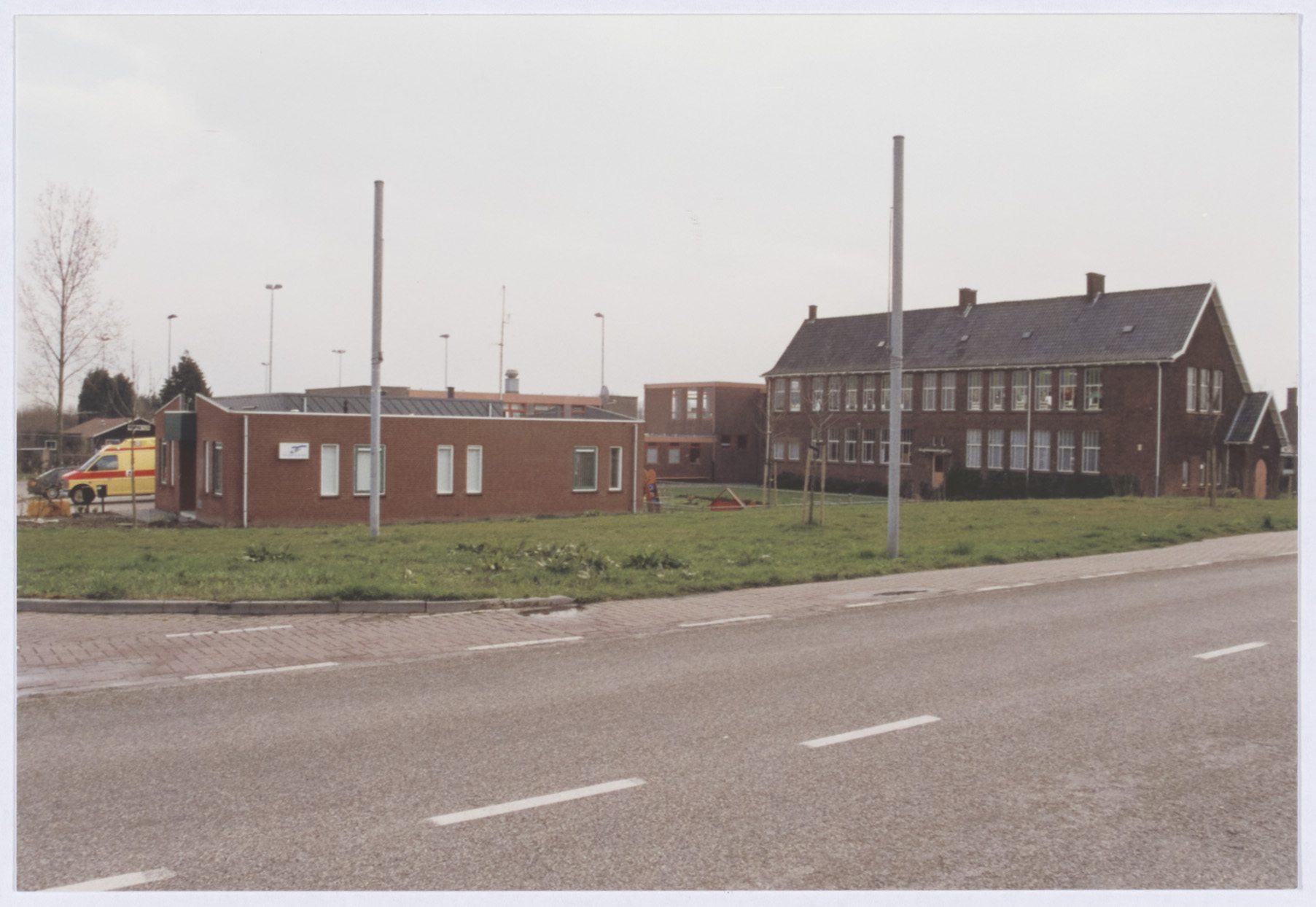 Landbouwschool en huishoudschool De Hoeckenisse aan de Molendijk in Klaaswaal. Links de ambulancepost.